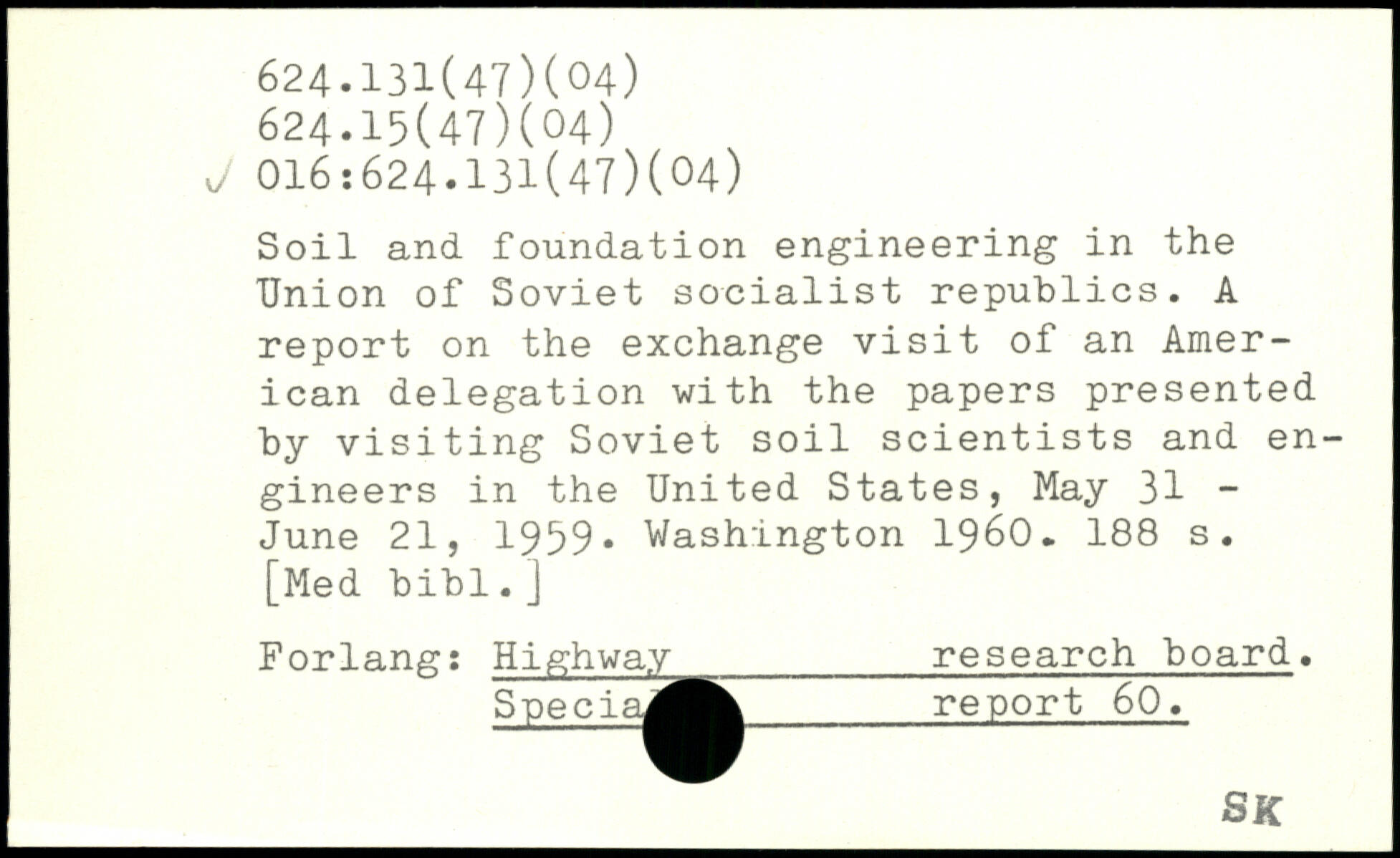 Soil and foundation engineering in the Union of Soviet socialist republics. A report on the exchange visit of an American delegation with the papers presented by visiting Soviet soil scientists and engineers in the United States, May 31 -June 21, 1959.