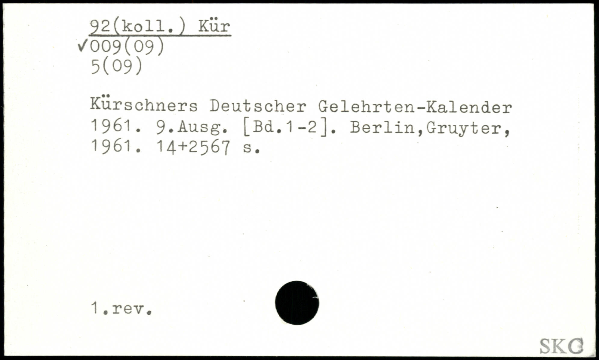 Kürschners Deutscher Gelehrten-Kalender 1961. 9,Ausg. [