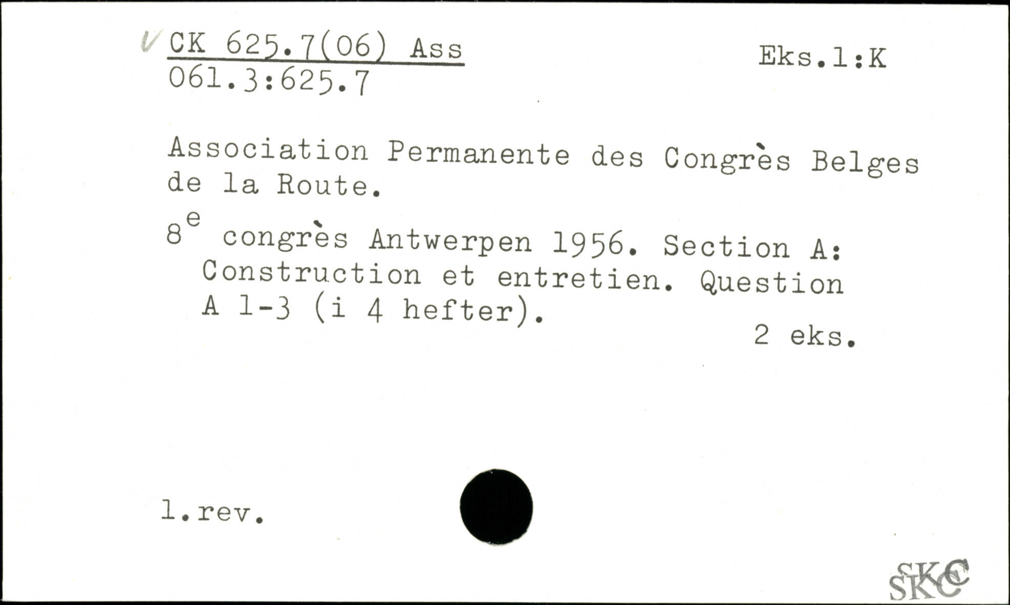 Association Permanente des Congrès Bels-es de la Route. 8e congres Antwerpen 1956. Section A: Construction et entretien. Question A 1-3 (i 4 hefter).