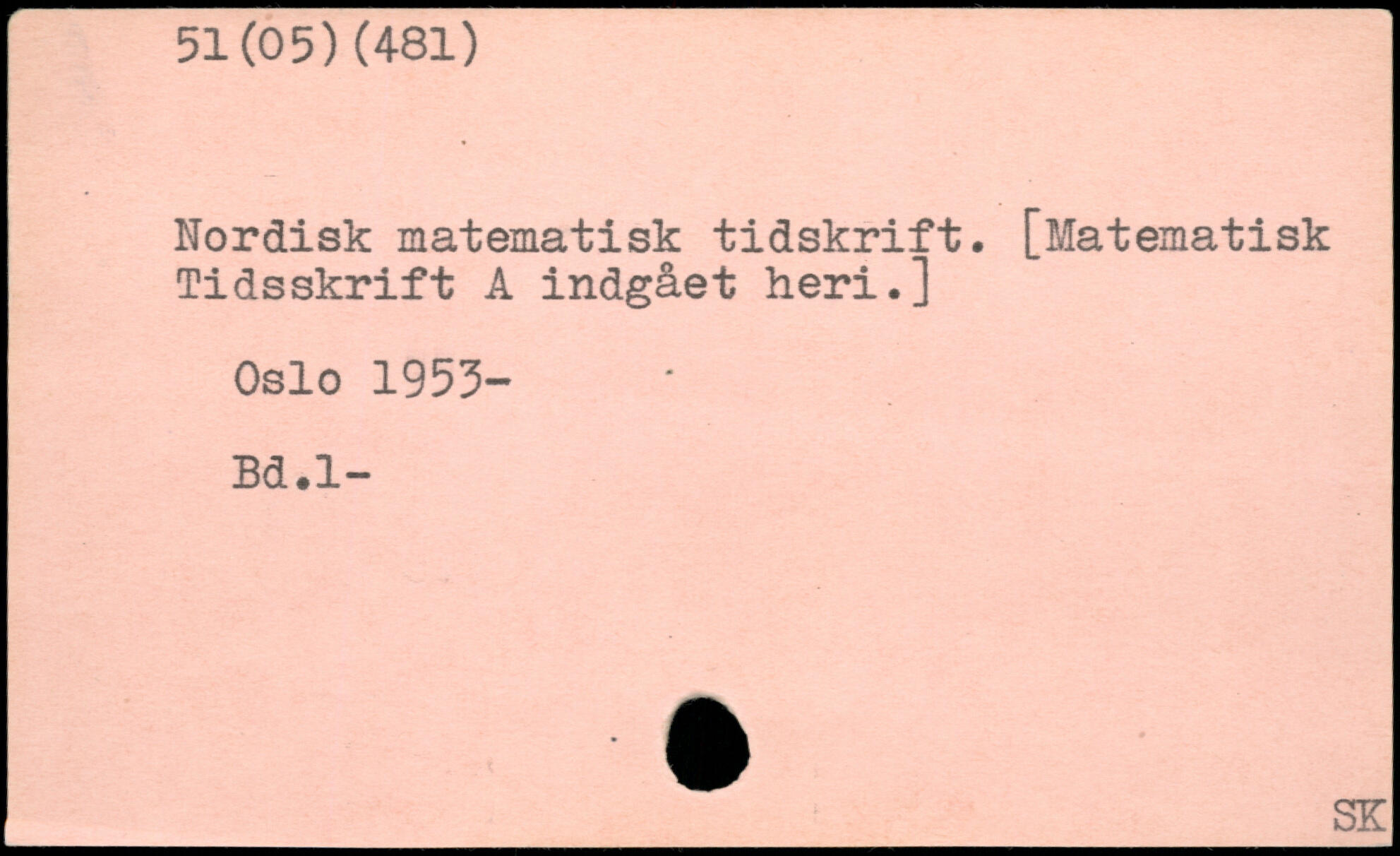 Nordisk matematisk tidskrift. [Matematisk Tidsskrift A indgået heri.] Oslo 1953- Bd.l-