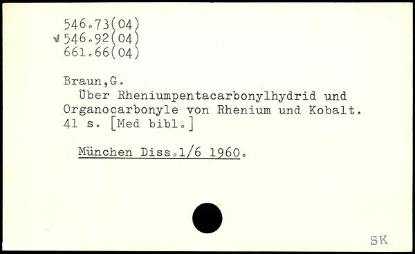 Über Rheniumpentacarbonylhydrid und Organocarbonyle von Rhenium und Kobalt.