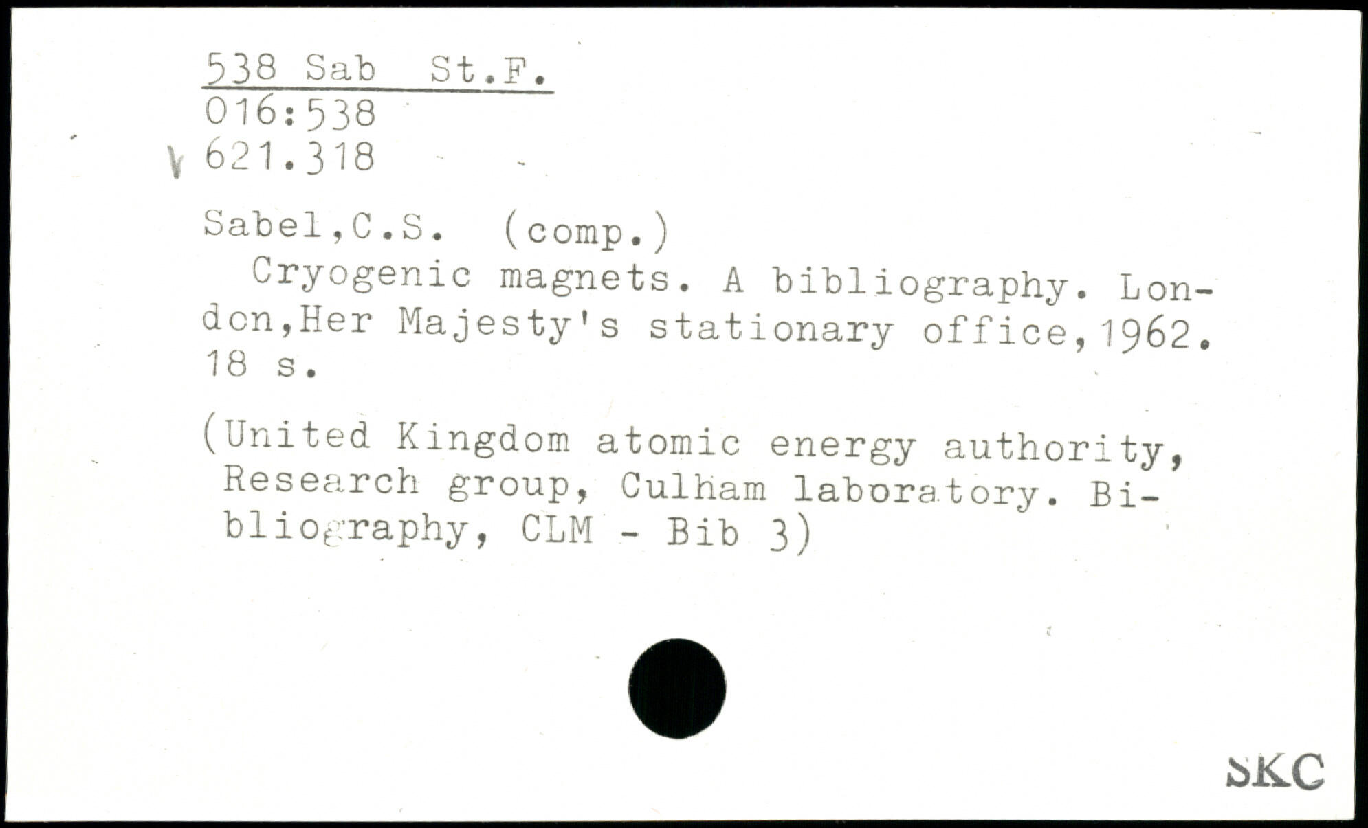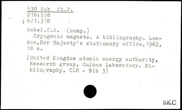 Cryogenic magnets. A bibliography. London,Her Majesty’s stationary office,1962.