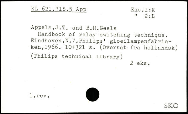 Handbook of relay switching technique. Eindhoven,N.V.Philips' gloeilampenfabrie-ken,1966.