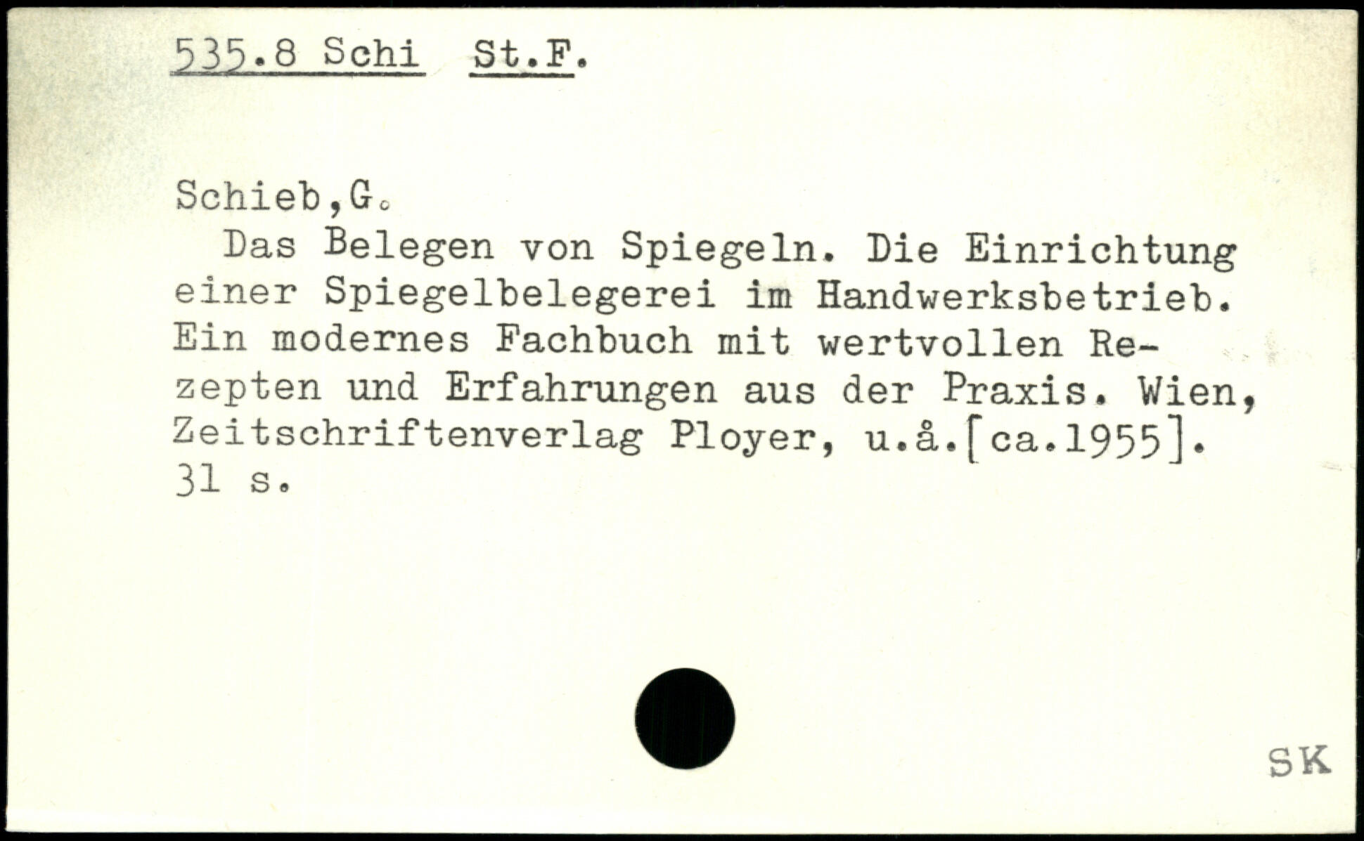 Das Belegen von Spiegeln. Die Einrichtung einer Spiegelhelegerei im Handwerksbetrieb. Ein modernes Fachbuch mit wertvollen Rezepten und Erfahrungen aus der Praxis. Vien, Zeitschriftenverlag Ployer, u.ä.fca.1955].