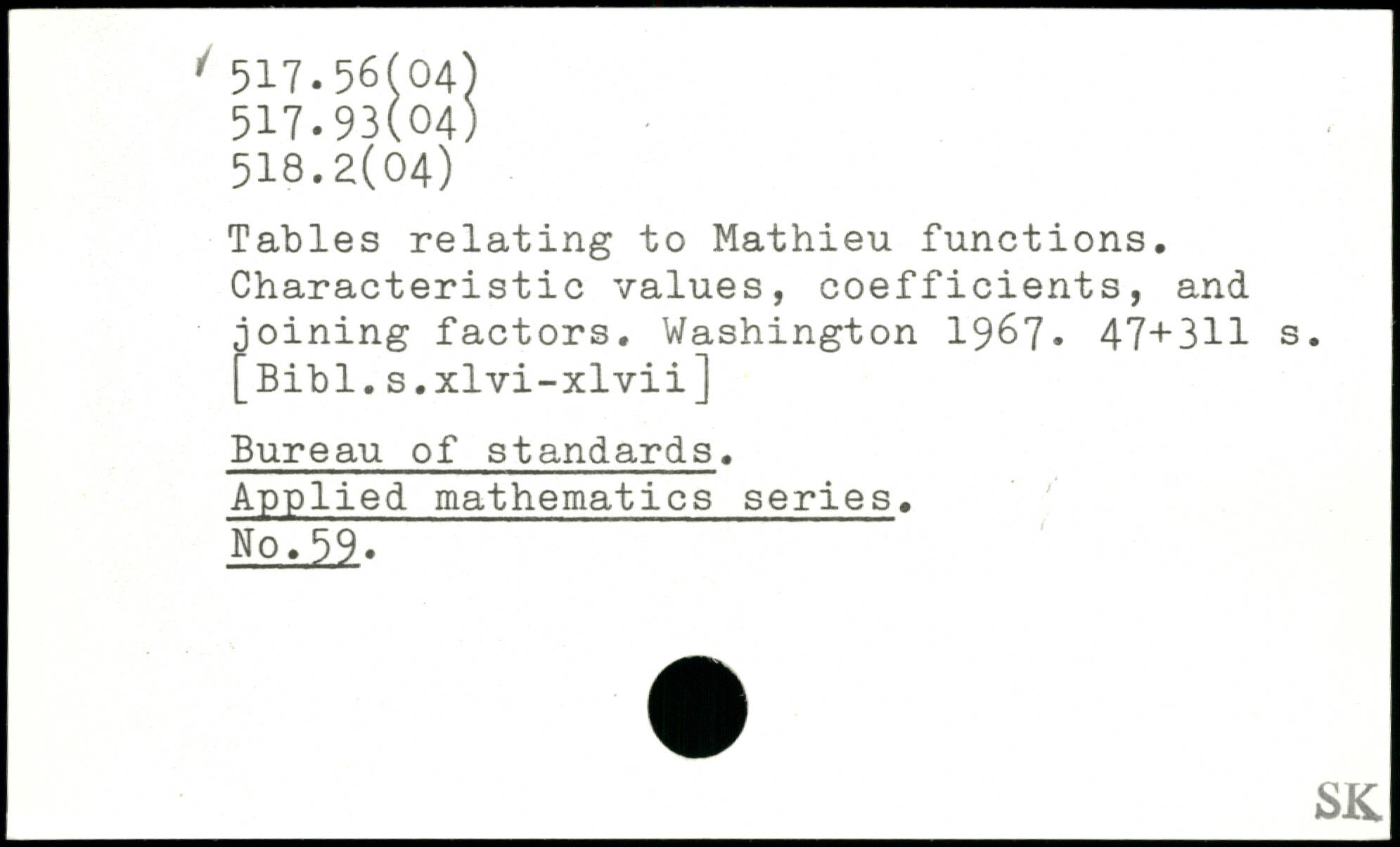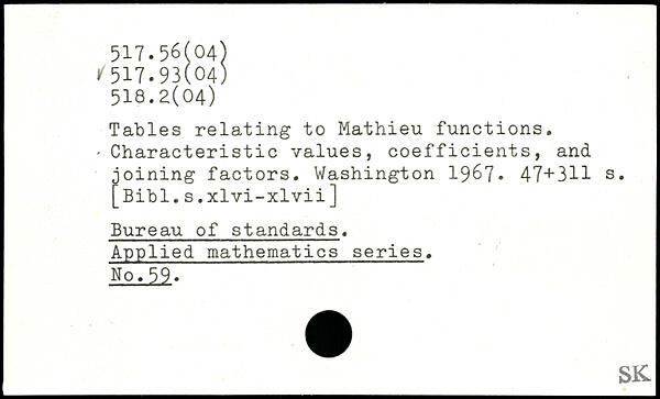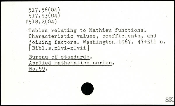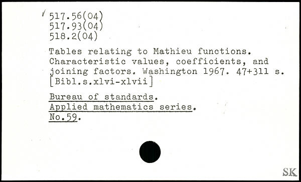 Tables relating to Mathieu functions. - Characteristic values, coefficients, and joining factors.