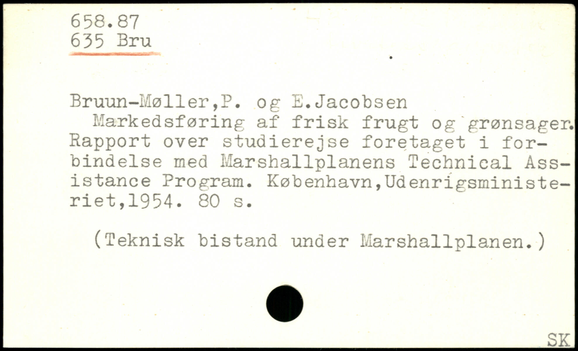 Markedsføring af frisk frugt og grønsager. Rapport over studierejse foretaget i forbindelse med Marshallplanens Technical Assistance Program.