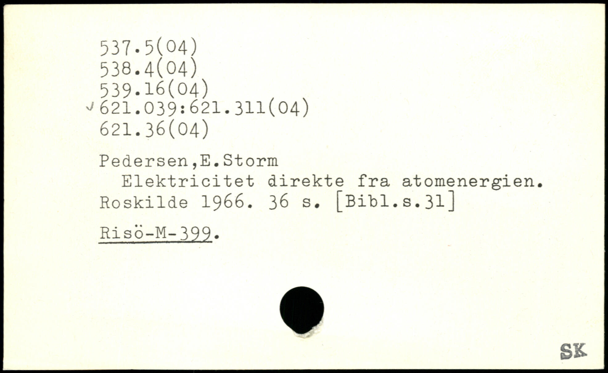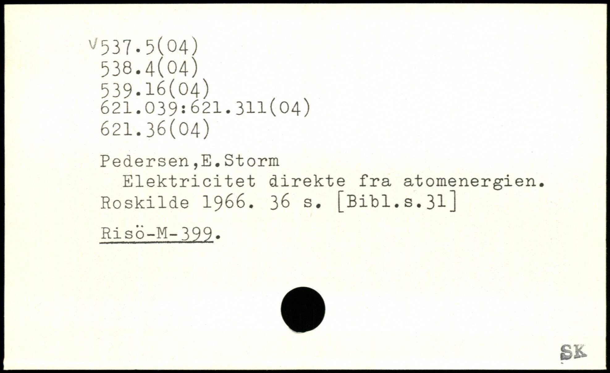 Pedersen,E.Storm Elektricitet direkte fra atomenergien. Roskilde 1966.