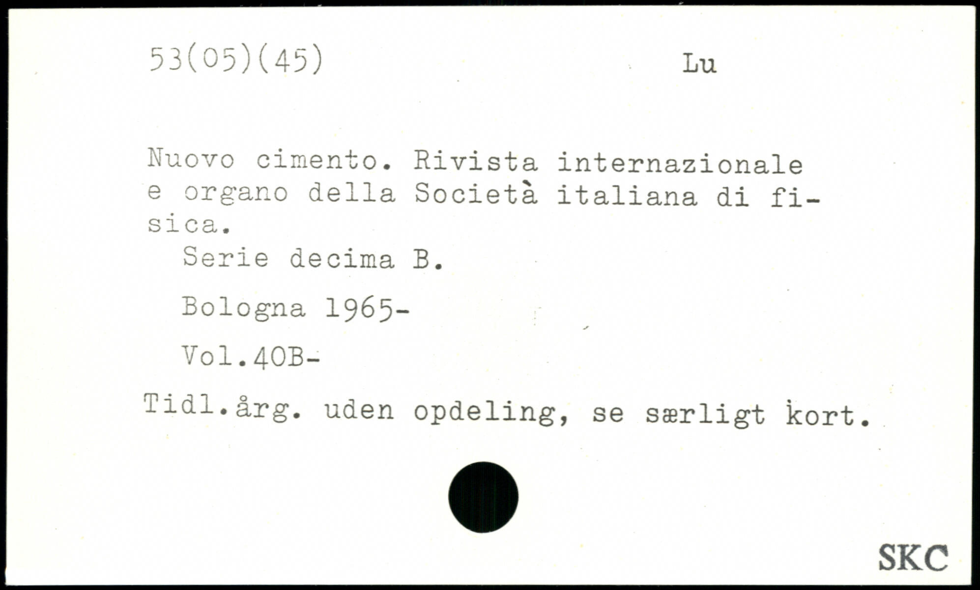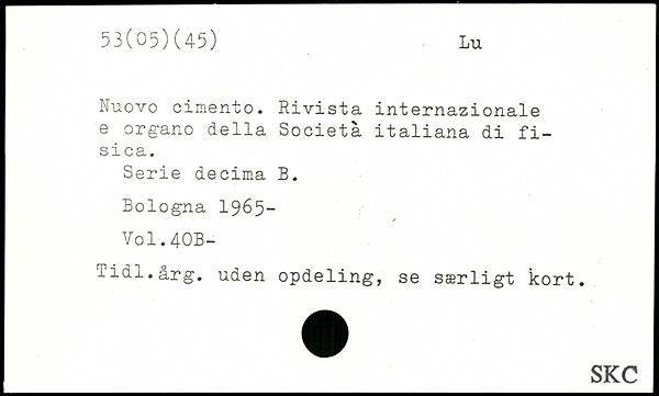 Nuovo cimento. Rivista internazionale e organo della Societa italiana di fi-sica. Serie decima B. Bologna 1965-V0I.4OB- Tidl.årg. uden opdeling, se særligt kort.