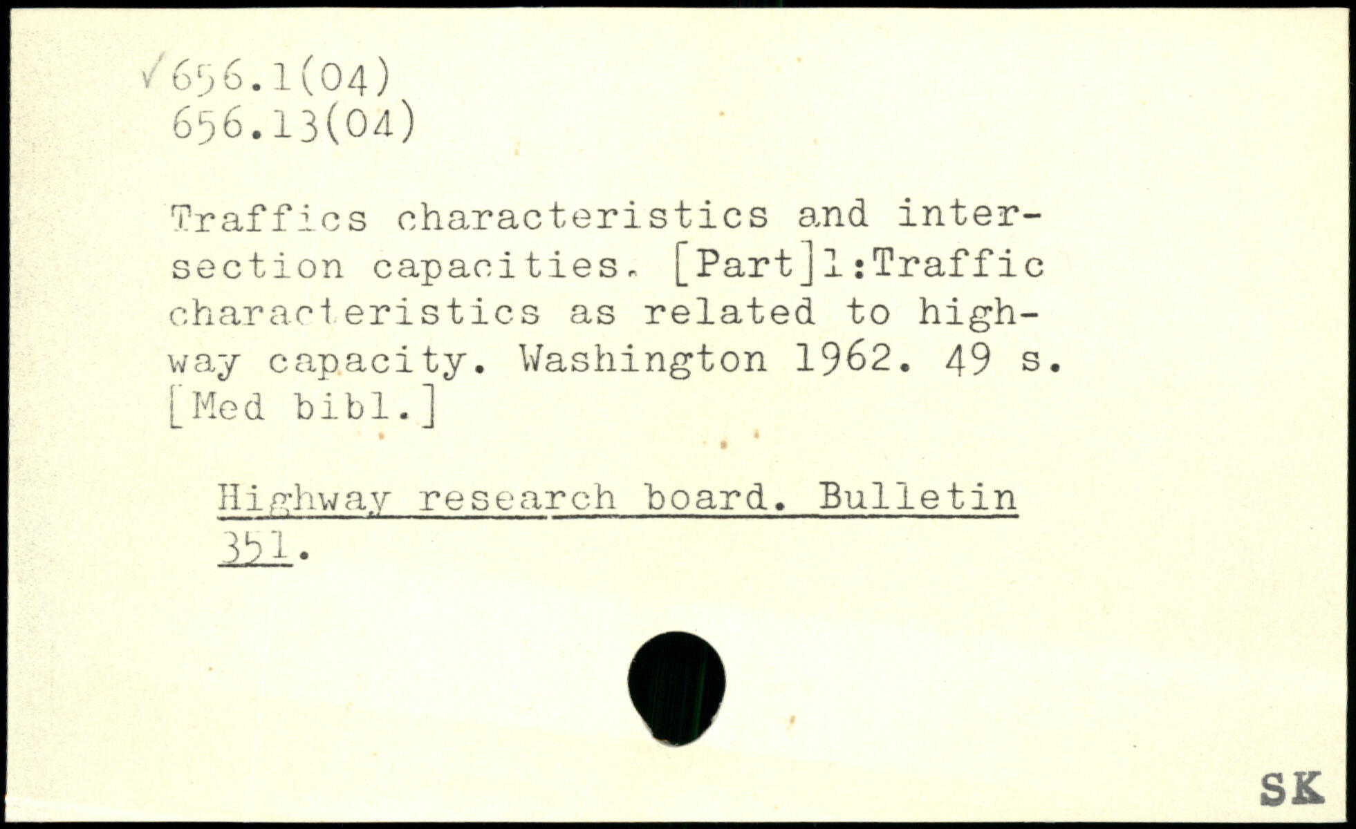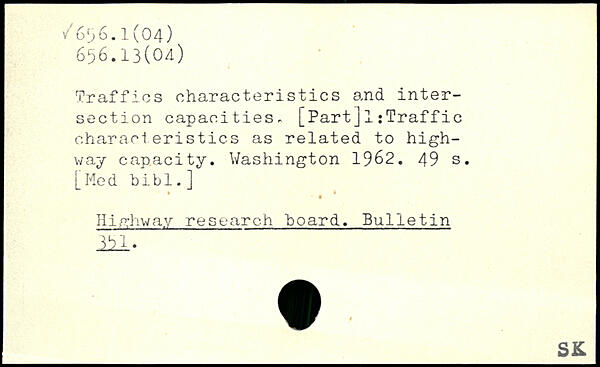 Traffics characteristics and intersection capacities. [Part]1:Traffic characteristics as related to highway capacity.