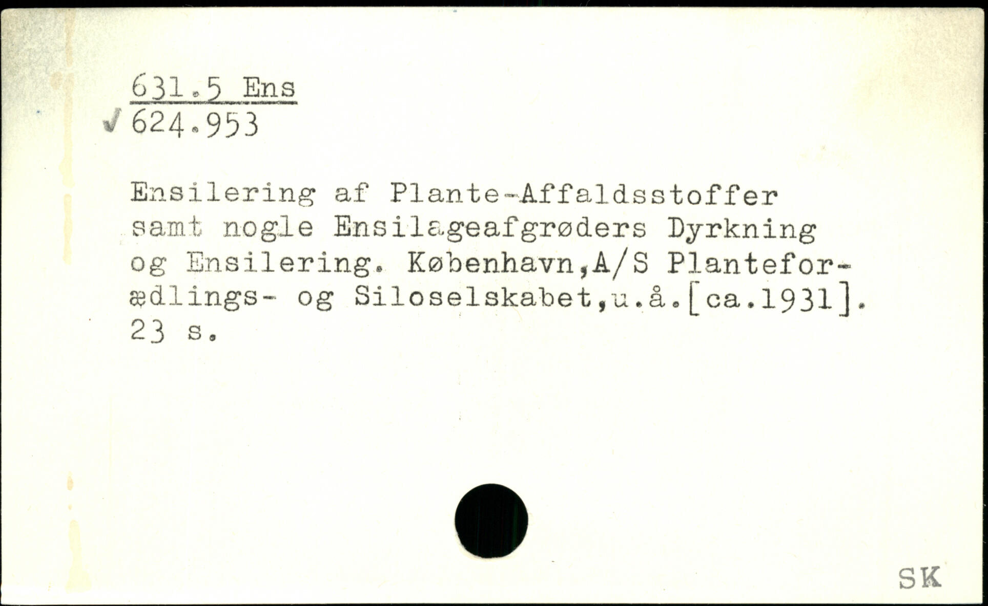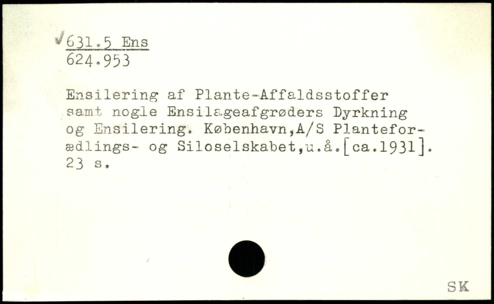 Ensilering af Plante-Affaldsstoffer samt nogle Ensilageafgrøders Dyrkning og Ensilering. København,A/S Planteforædlings- og Siloselskabet,u.å,[ca.1931].