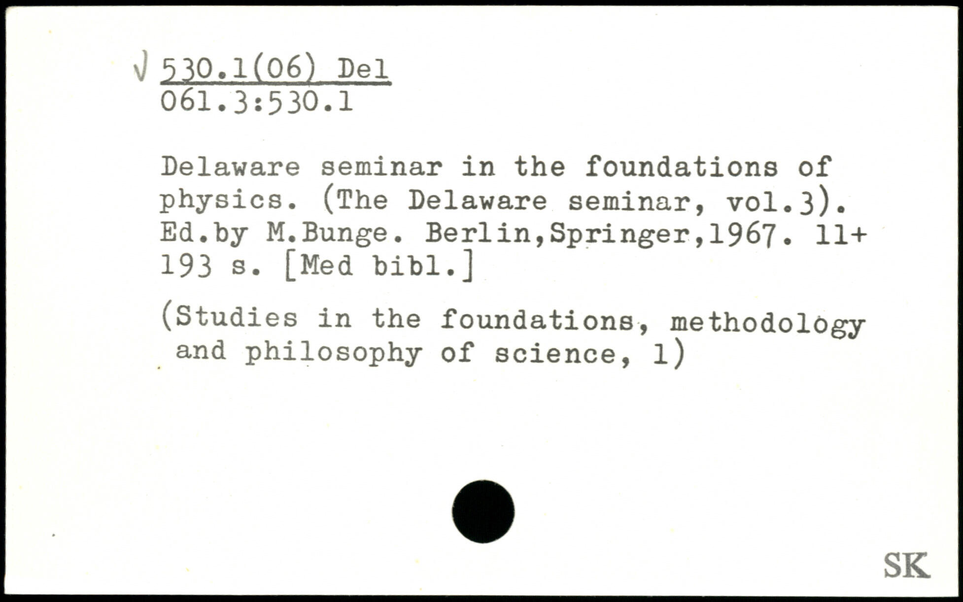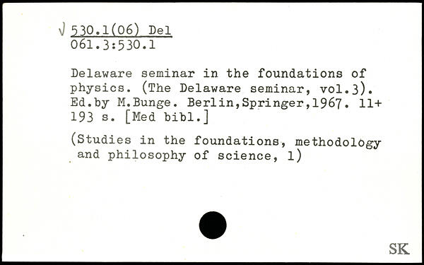 Delaware seminar in the foundations of physics. (The Delaware seminar