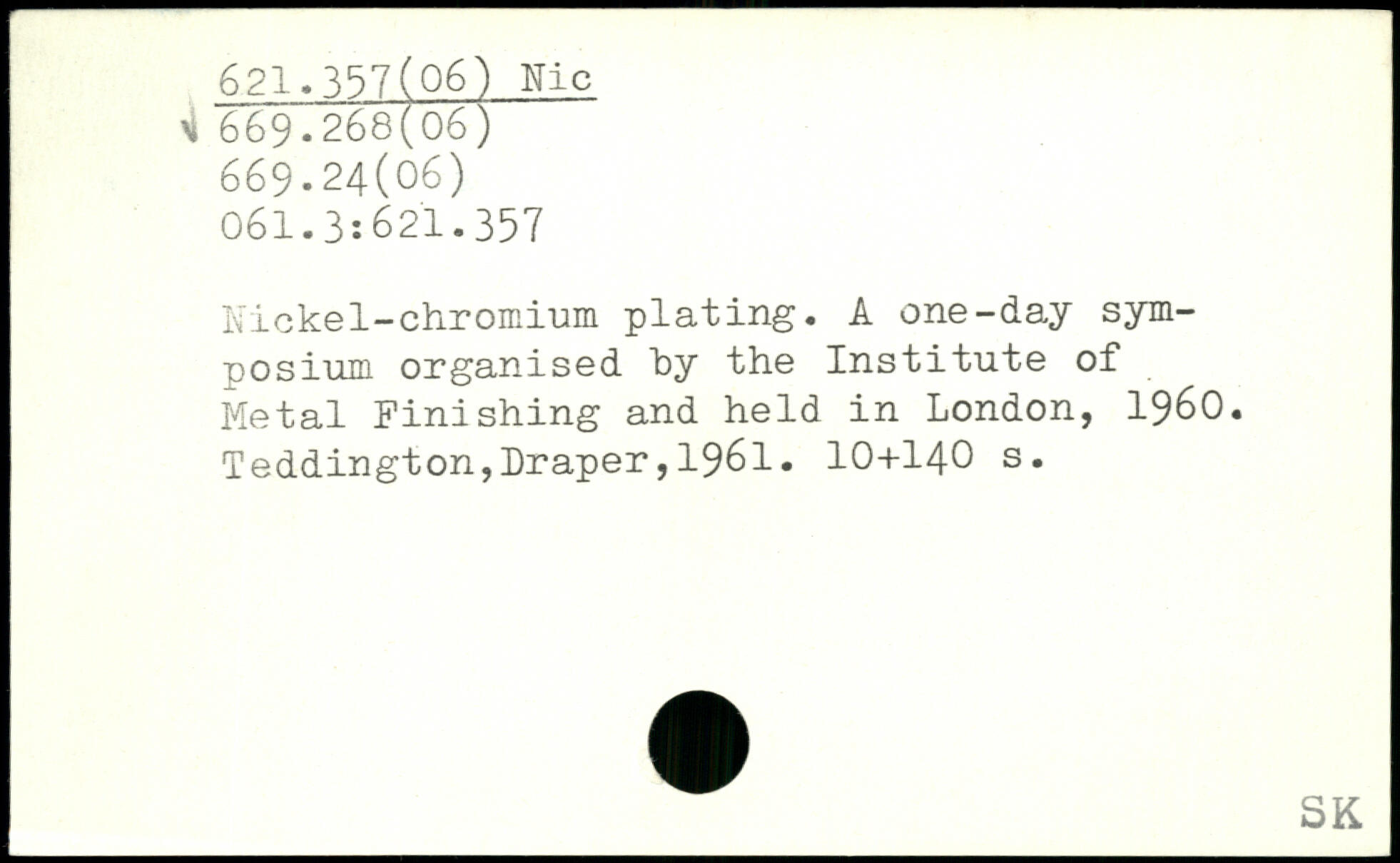 Nickel-chromium plating. A one-day symposium organised "by the Institute of Metal Finishing and held in London, 1960.