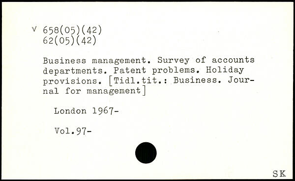 Business management. Survey of accounts departments. Patent problems. Holiday provisions. [Tidl.tit.s Business. Journal for management]