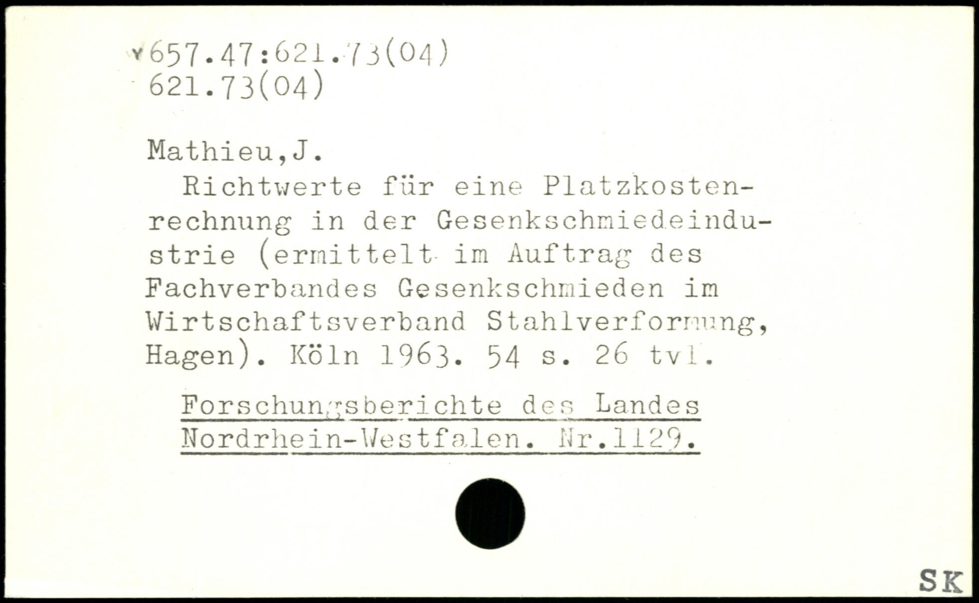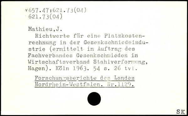 Richtwerte für eine Platzkostenrechnung in der Gesenkschmiedeindu-strie (ermittelt im Auftrag des Fachverbandes Gesenkschmieden im Wirtschaftsverband Stah1Verformung, Hagen).