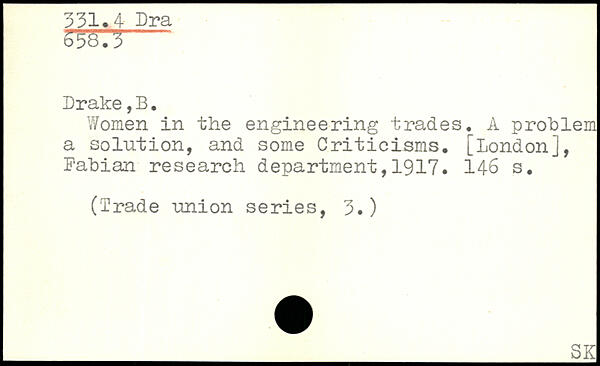 Women in the engineering trades. A problem a solution, and some Criticisms. [London], Pabian research department,1917.