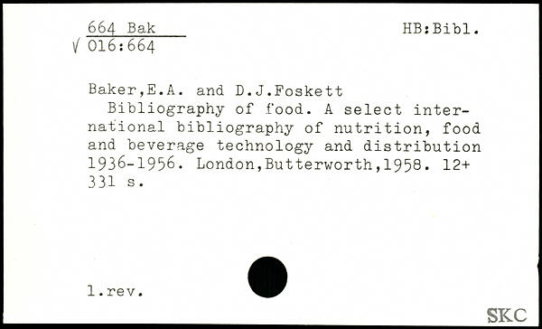 Bibliography of food. A select international bibliography of nutrition, food and beverage technology and distribution 1936-1956.