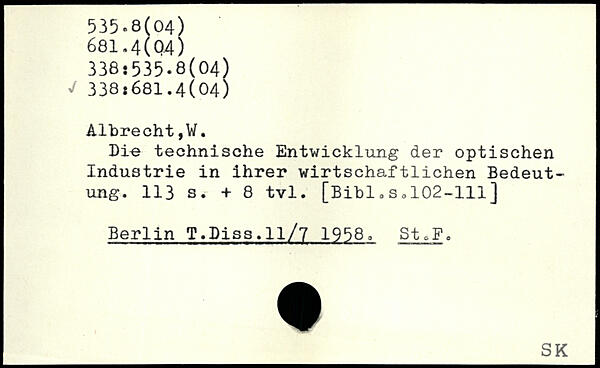 Die technische Entwicklung der optischen Industrie in ihrer wirtschaftlichen Bedeutung.