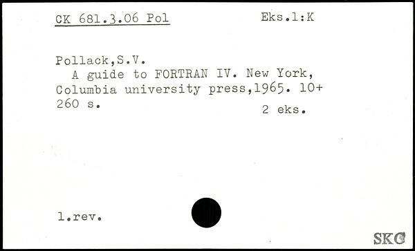A guide to FORTRAN IV. New York, Columbia university press,19&5, 10+