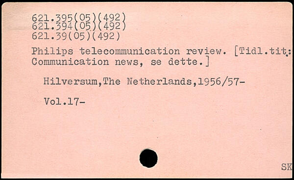 Philips telecommunication reviev/. [Tidl.tit,: Communication news, se dette.]