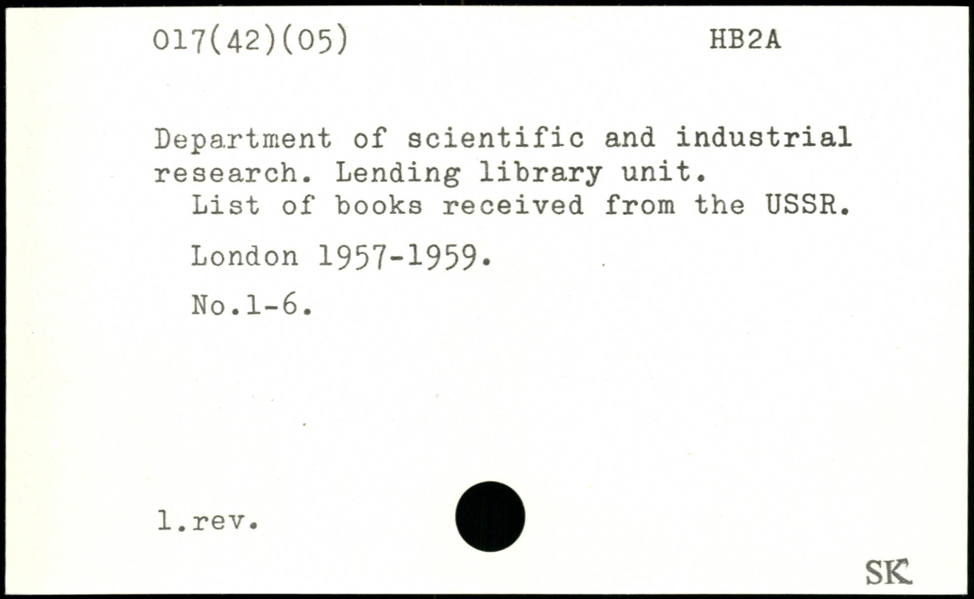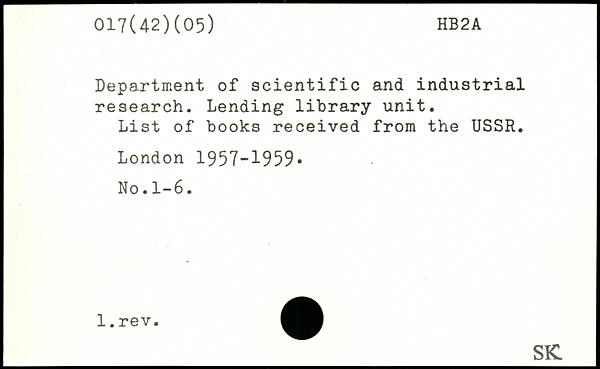 Department of scientific and industrial research. Lending library unit. List of books received from the USSR.