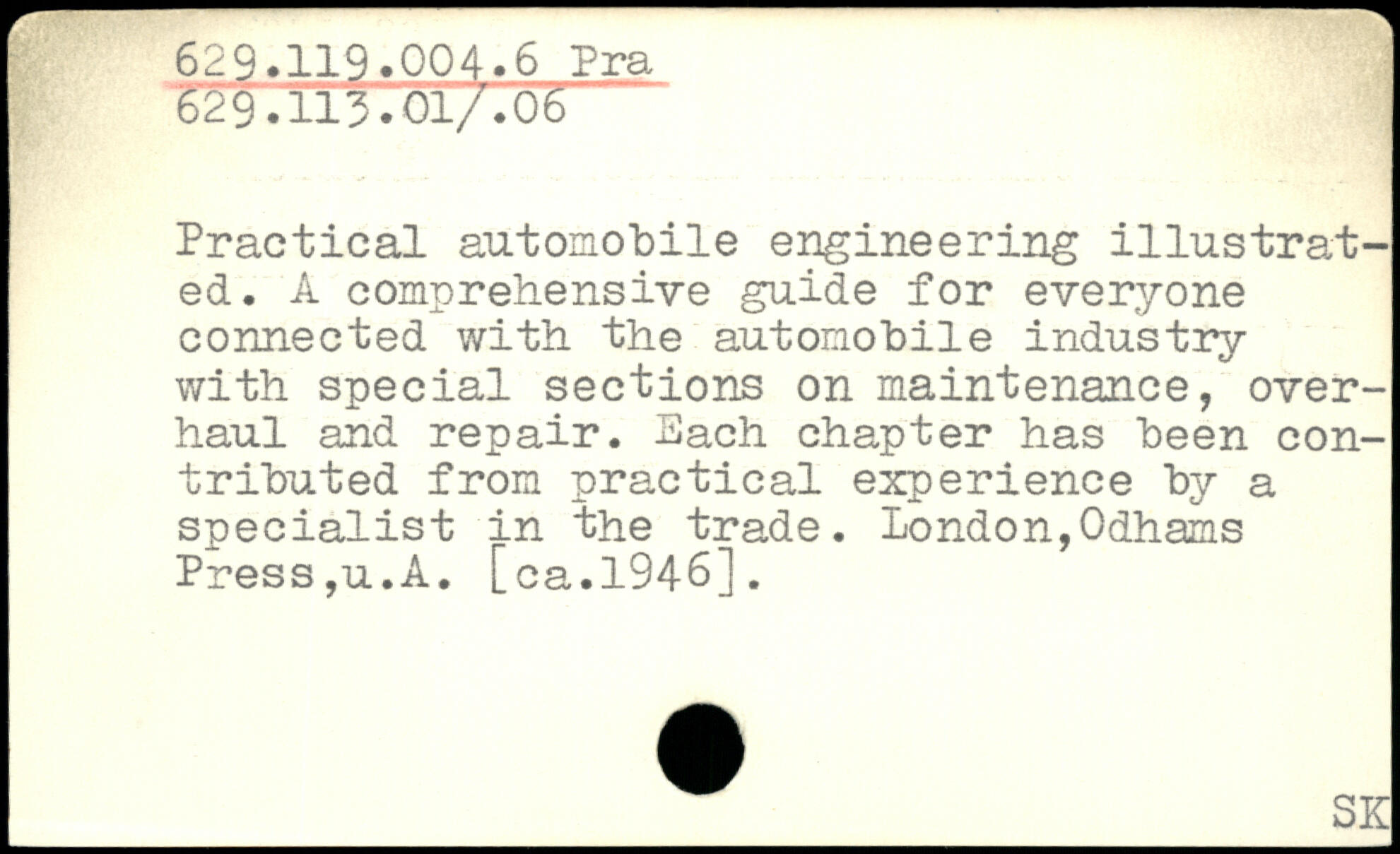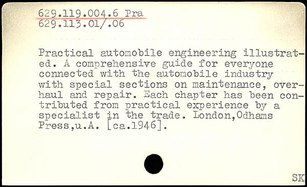 Practical automobile engineering illustrated. A comprehensive guide for everyone connected with the automobile industry with special sections on maintenance, overhaul and repair. Each chapter has been contributed from practical experience by a specialist in the trade. London,Odhams Press,u.A. [ca.1946].