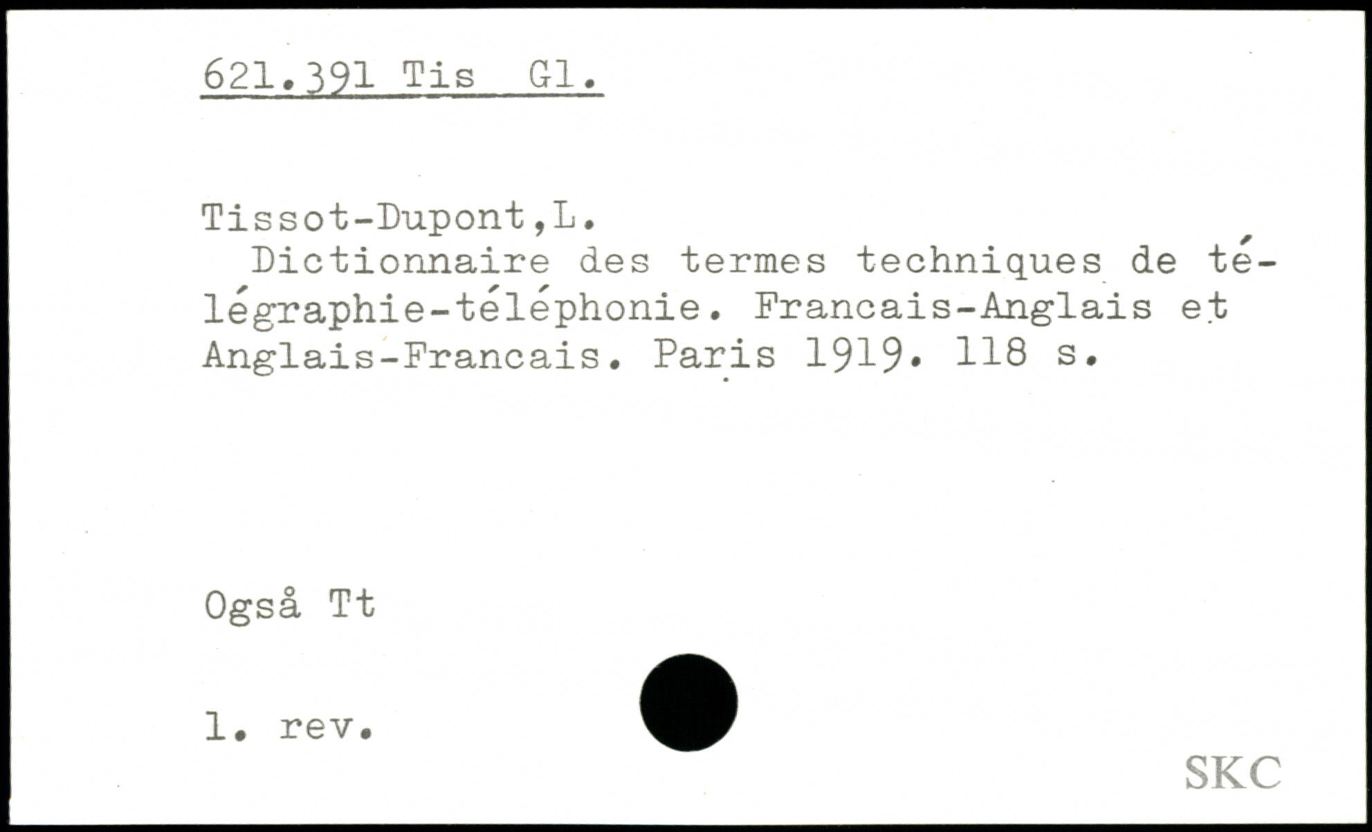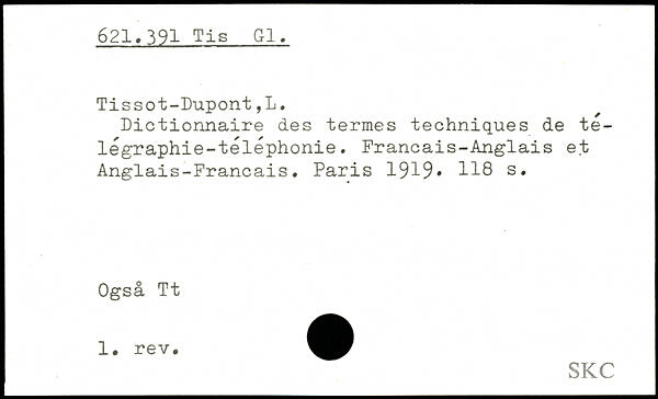 Dictionnaire des termes techniques de te-légraphie-téléphonie. Français-Anglais et Anglais-Français.