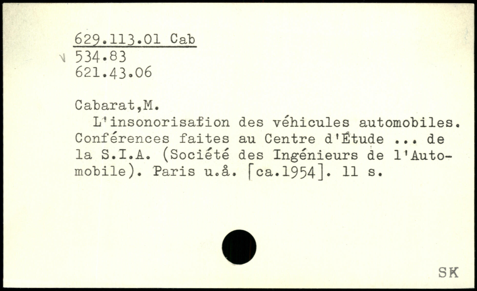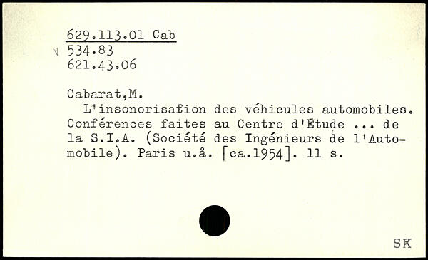 L1insonorisaiion des véhicules automobiles. Conférences faites au Centre d'Ëtude ... de la S.I.A. (Société des Ingénieurs de l'Automobile). Paris u.â. fca.1954].
