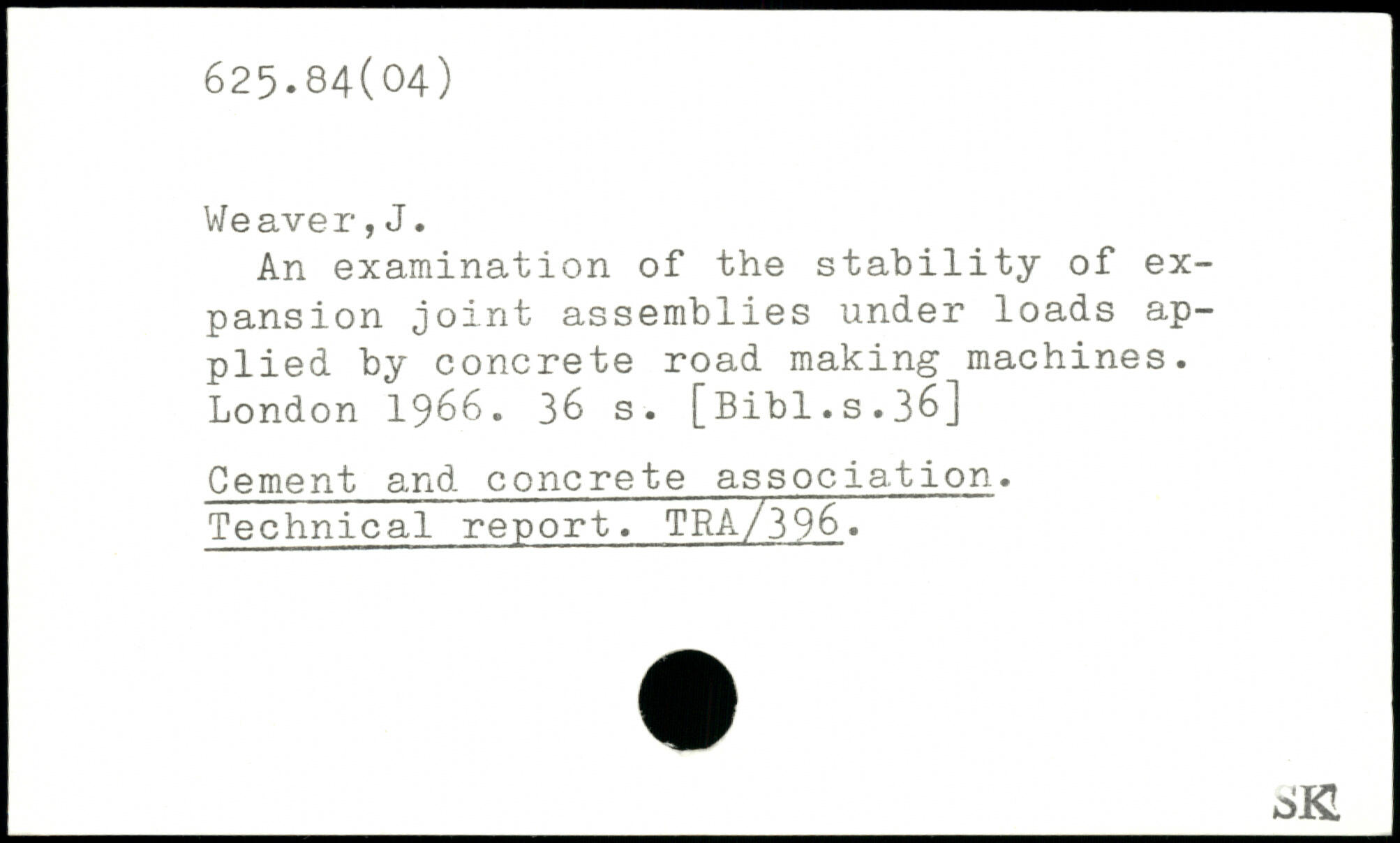 An examination of the stability of expansion joint assemblies under loads applied by concrete road making machines.