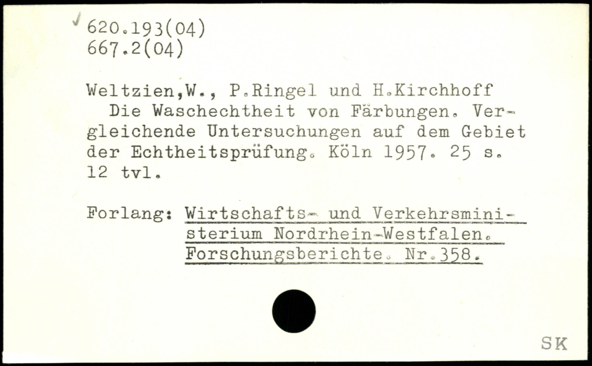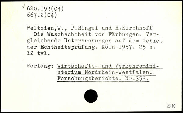 Weltzien,W., P.Ringel und H.Kirchhoff Die Waschechtheit von Färbungen. Vergleichende Untersuchungen auf dem Gebiet der Echtheitsprüfungo