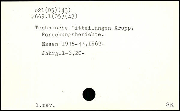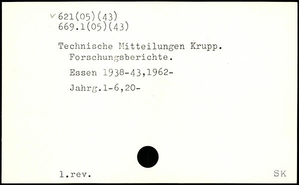 Technische Mitteilungen Krupp. Forschungsherichte.