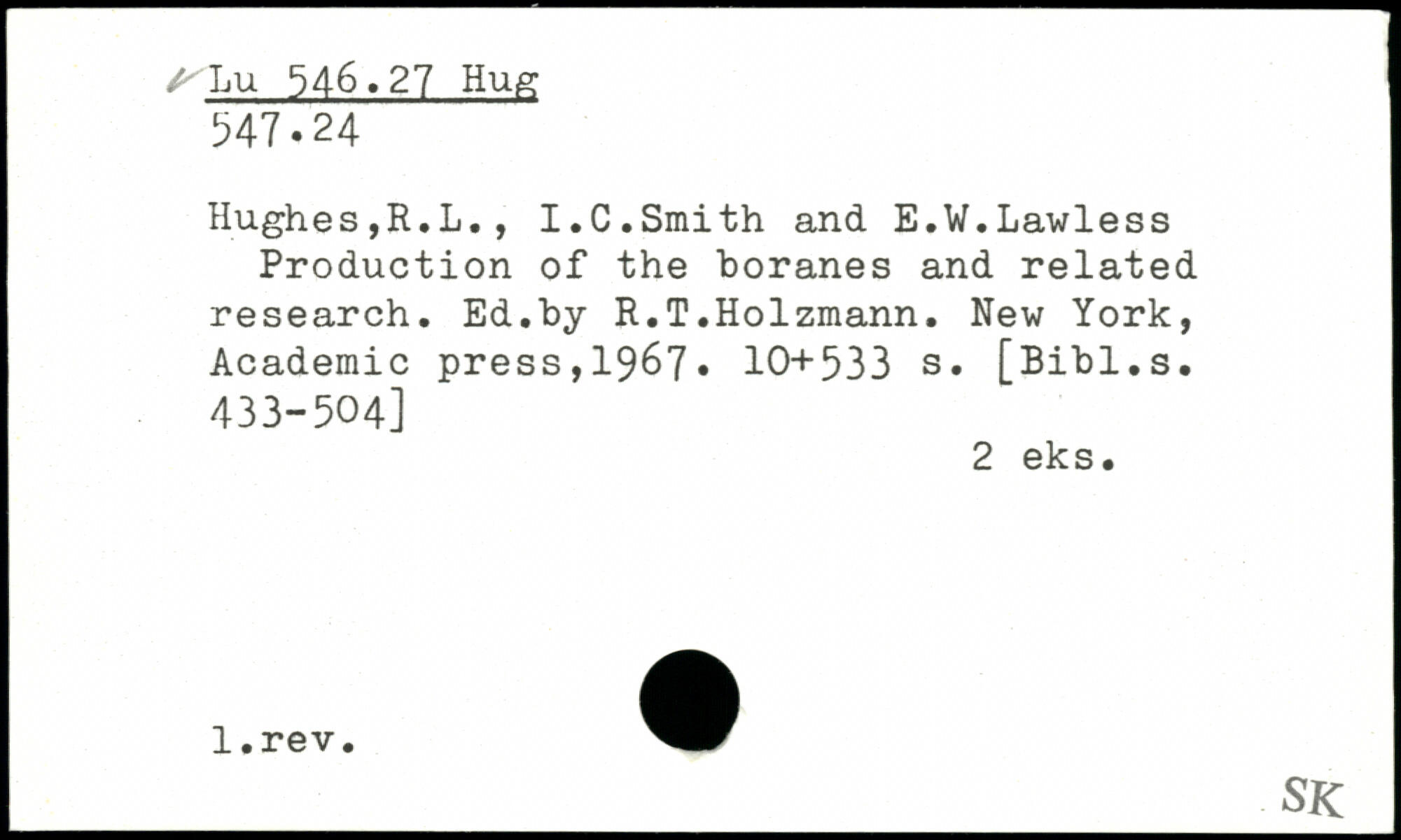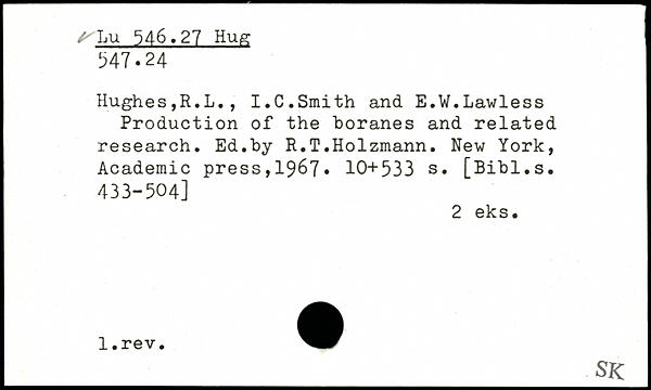 Hughes,R.L., I.C.Smith and E.W.Lawless Production of the boranes and related research. Ed.by R.T.Holzmann.