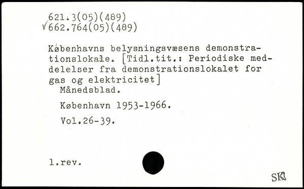 Københavns belysningsvæsens demonstrationslokale. [Tidl.tit.: Periodiske meddelelser fra demonstrationslokalet for gas og elektricitet] Månedsblad.