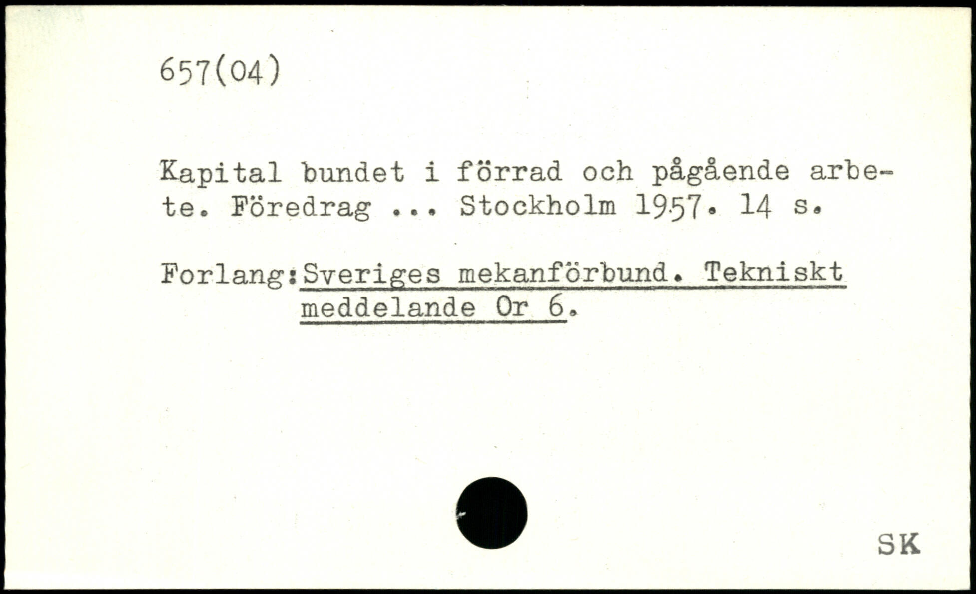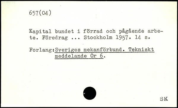 Kapital bundet i förrad och pågående arbete. Föredrag ... Stockholm 19-57.