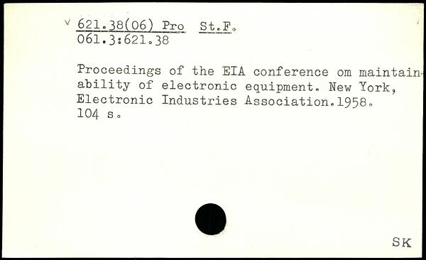 Proceedings of the EIA conference om maintain. ability of electronic equipment. New York, Electronic Industries Association.1958