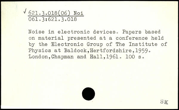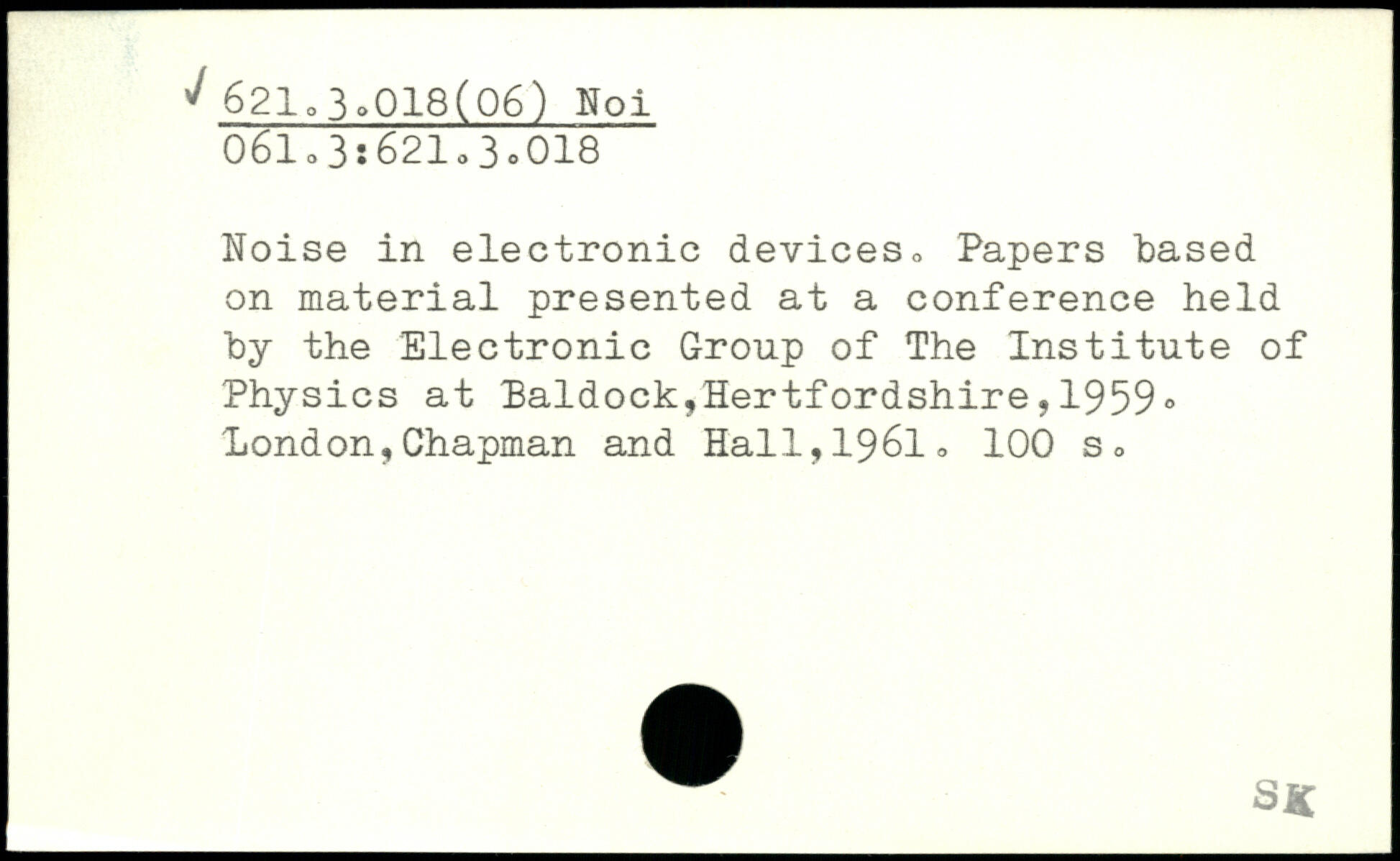 Noise in electronic devices<> Papers based on material presented at a conference held by the Electronic Group of The Institute of