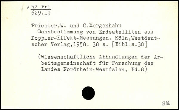 BahnbeStimmung von Erdsatelliten aus Doppler-Effekt~Messungen<, Köln 9 Westdeutscher Verlag,1958.