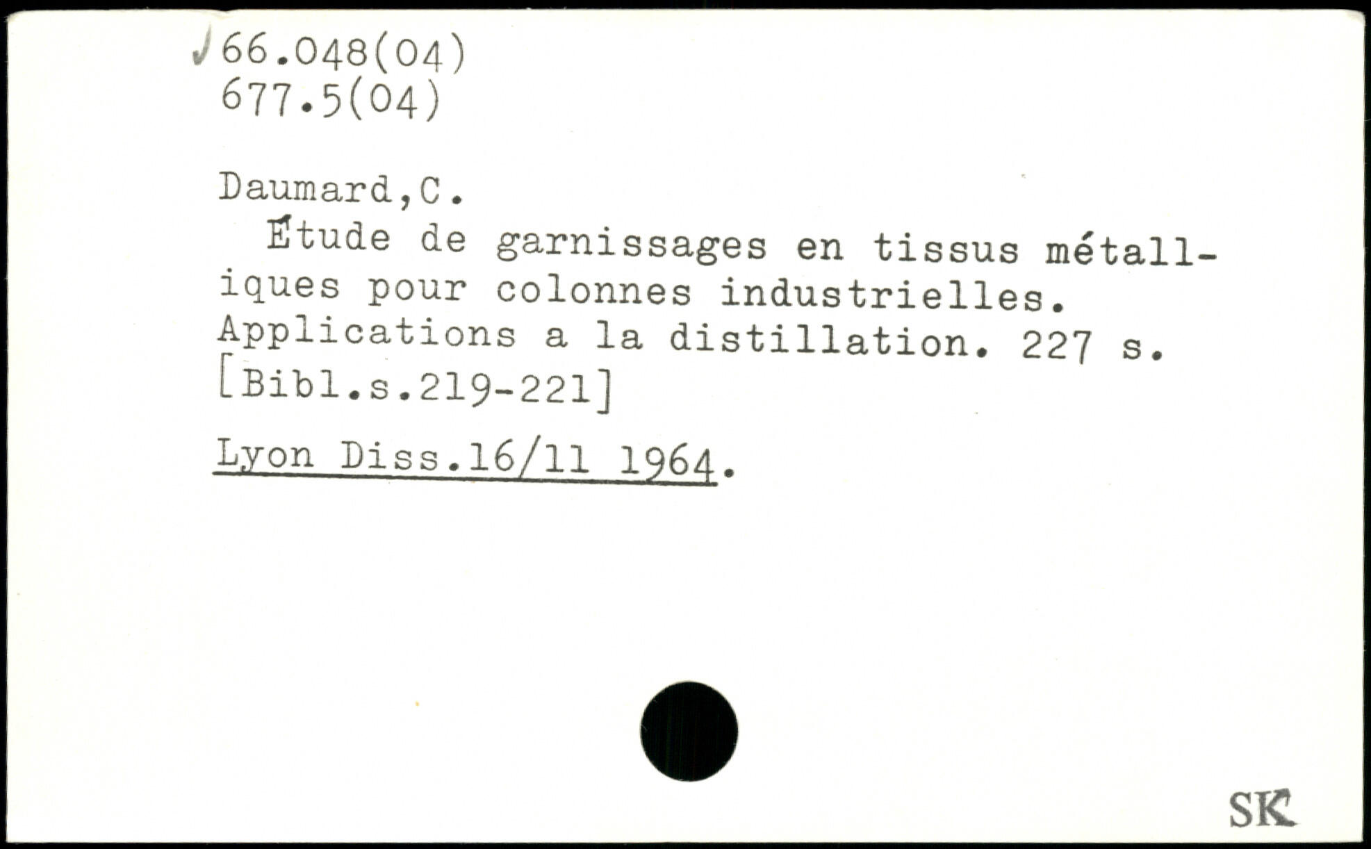 ïîtude de garnissages en tissus métalliques pour colonnes industrielles. Applications a la distillation.