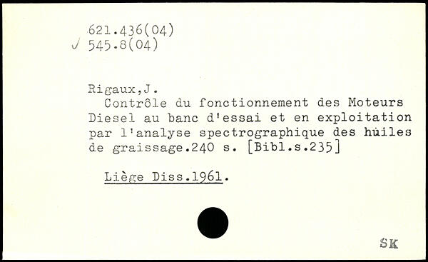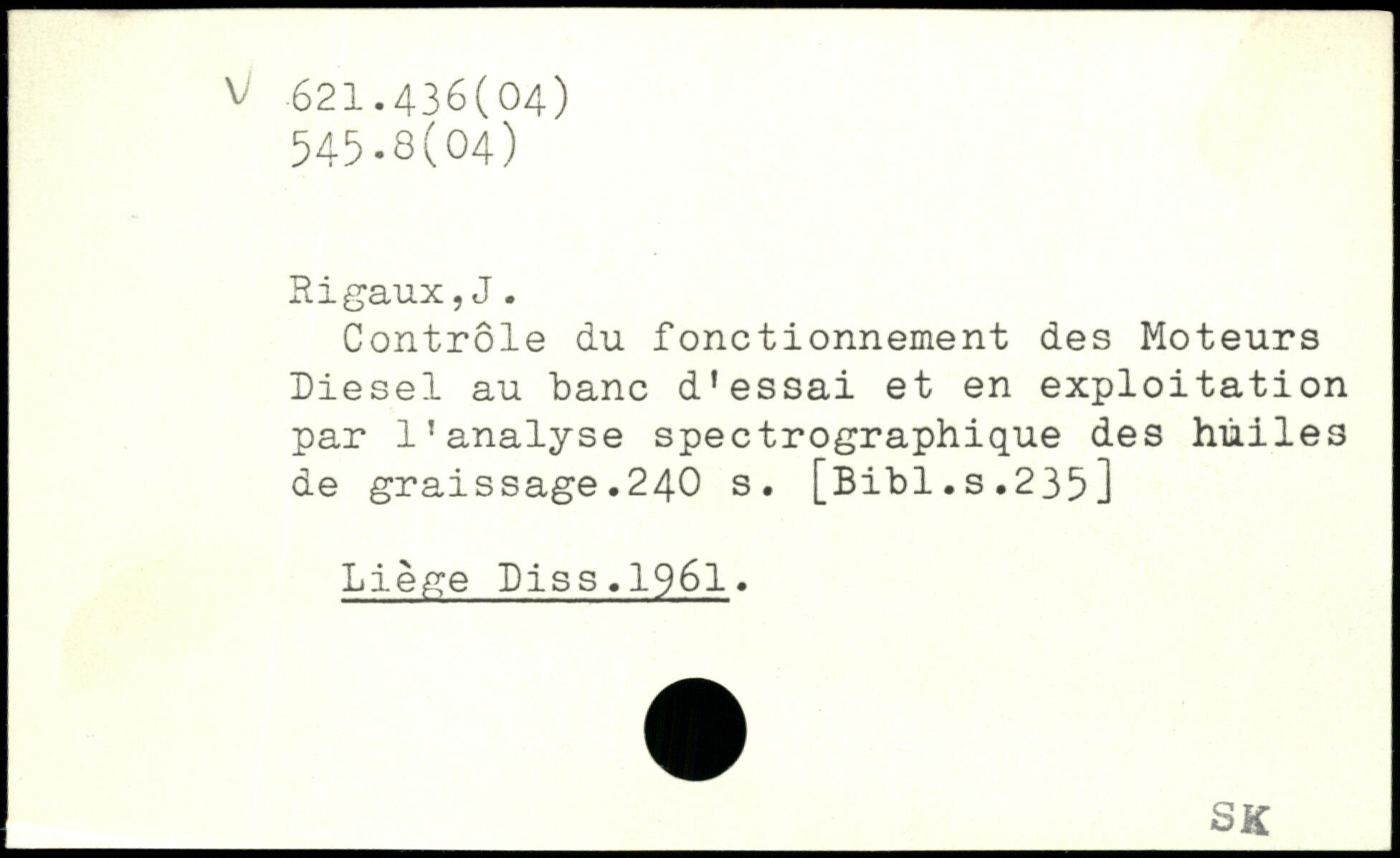 Contrôle du fonctionnement des Moteurs Diesel au banc d'essai et en exploitation par l’analyse spectrographique des huiles de graissage.