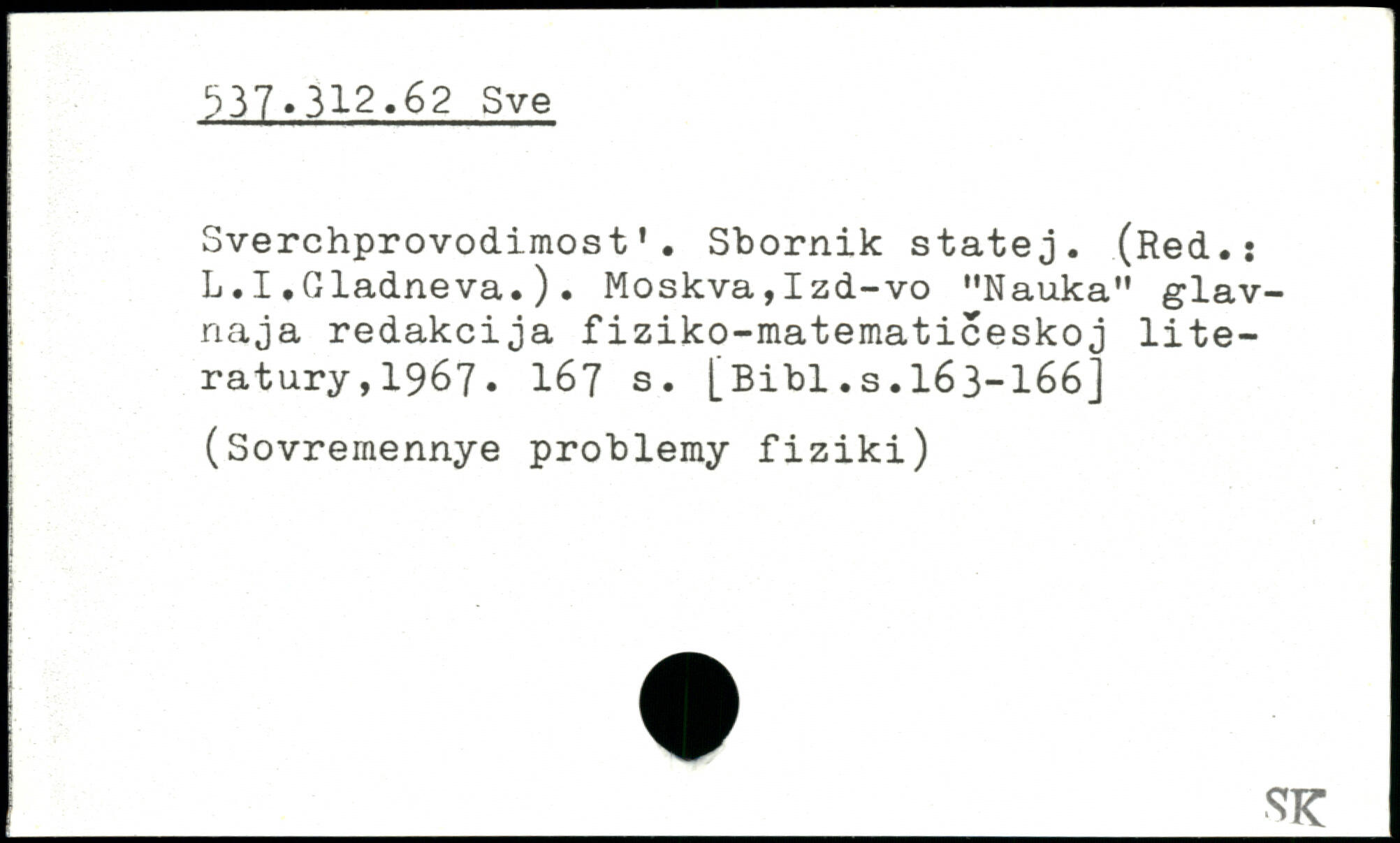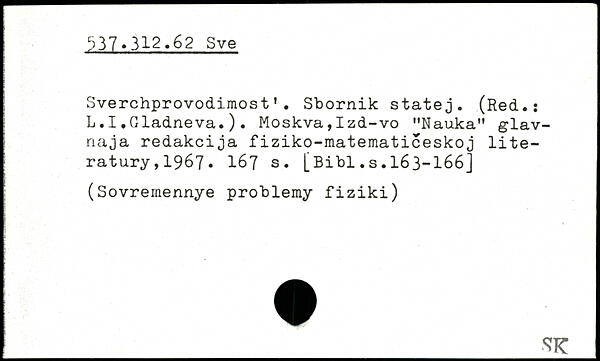 Sverchprovodimost'. Sbornik statej. (Red.; L.I.Gladneva.). Moskva,Izd-vo "Nauka" glav-naja redakcija fiziko-matematiceskoj lite-ratury,1967. I