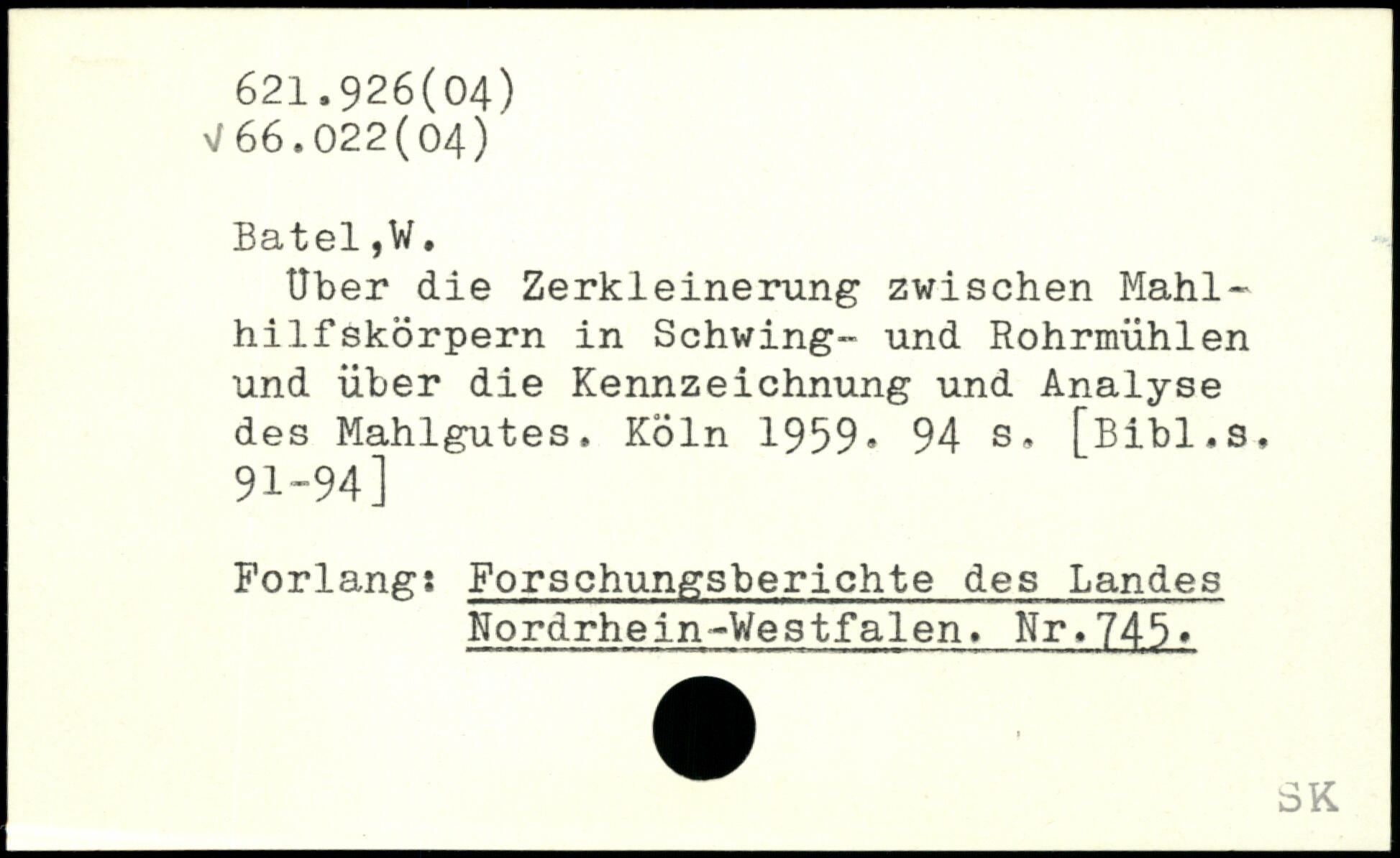 Über die Zerkleinerung zwischen Mahlhilf skörpern in Schwing- und Rohrmühlen und über die Kennzeichnung und Analyse des Mahlgutes.