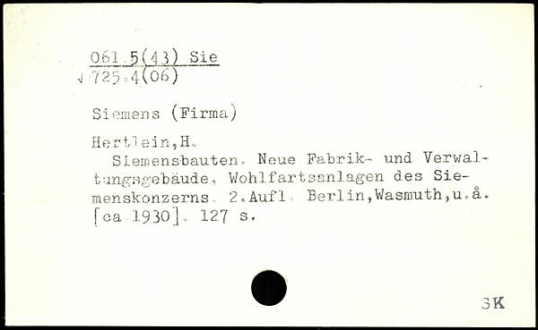 Sieinensbauten. Neue Fabrik- und Verwaltungsgebäude, Wohlfartsanlagen des Siemenskonzerns , 2,Auil. Berlin,Wasmuth,u , a. [ca 1930]. I