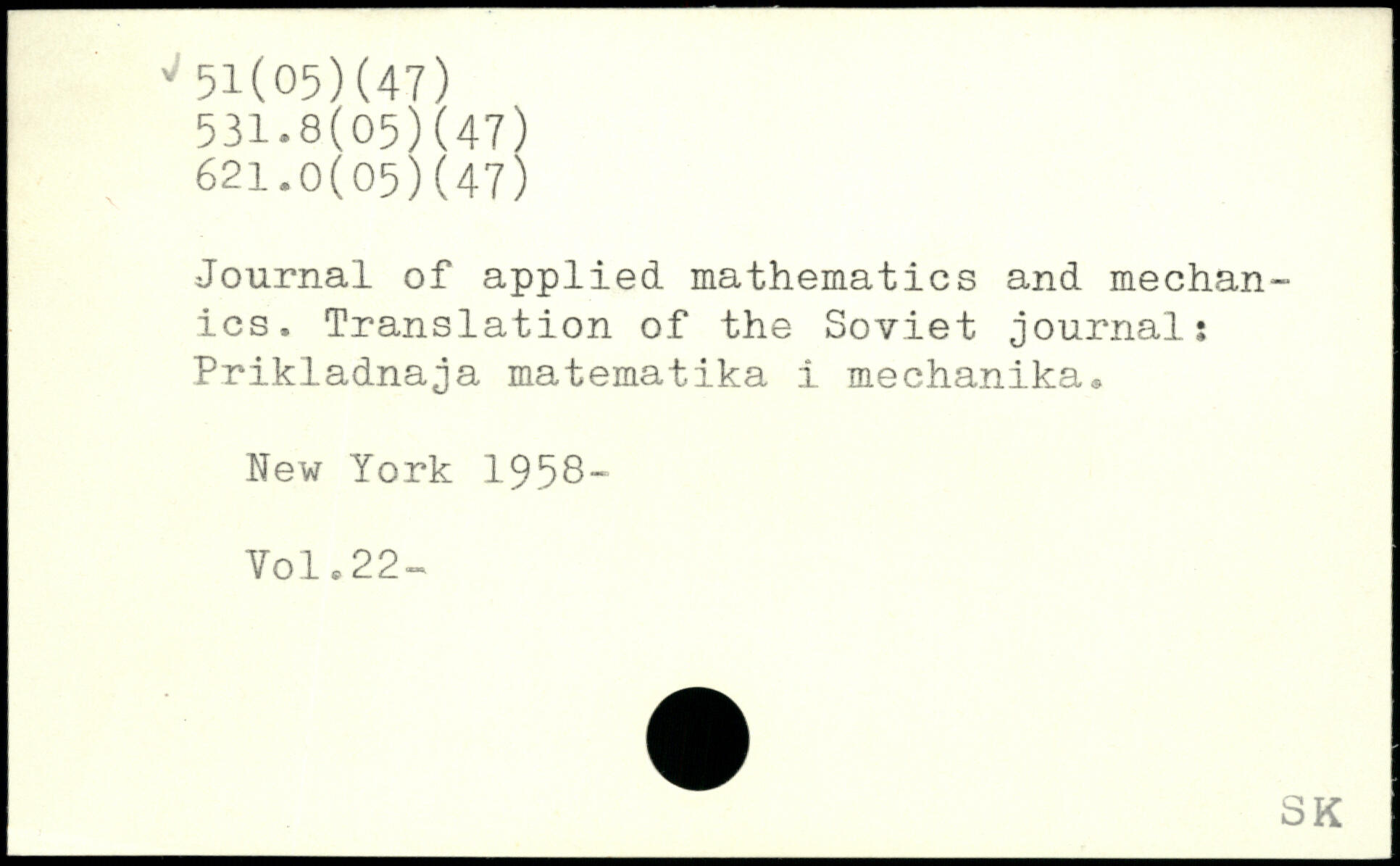 Journal of applied mathematics and mechanics. Translation of the Soviet journal: Prikladnaja matematika i mechanika®