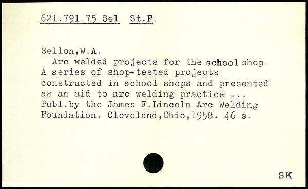 Arc welded projects for the school shop A series of shop-tested projects constructed in school shops and presented as an aid to arc welding practice ...