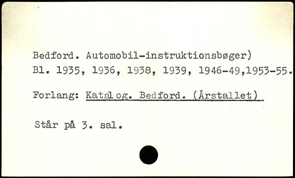 Bedford. Automobil-instruktionsbøger) Bl. 1935, 1936, 1938, 1939, 1946-49,1953-55. Forlang: Katalog. Bedford, (Årstallet) Står på 3. sal.