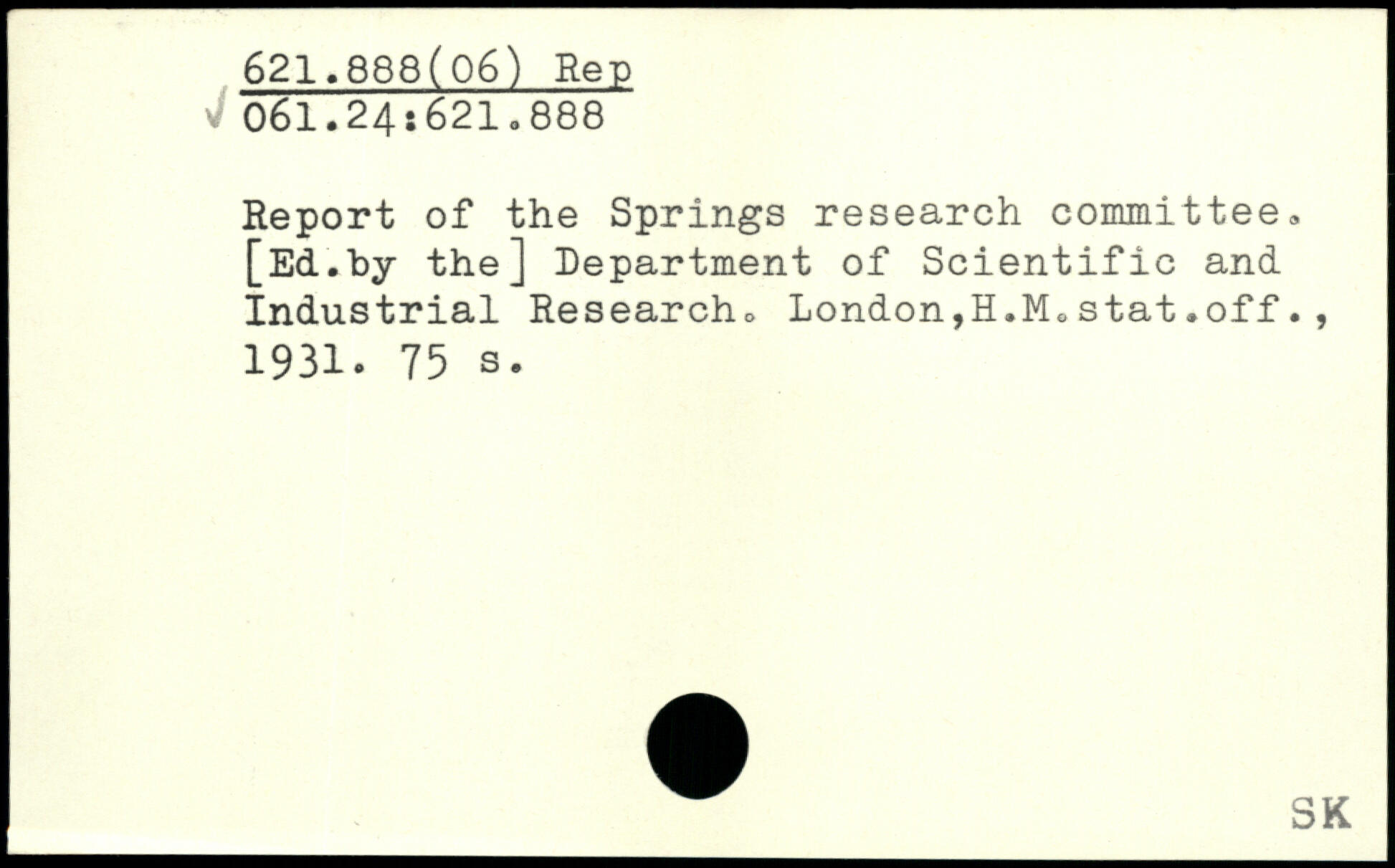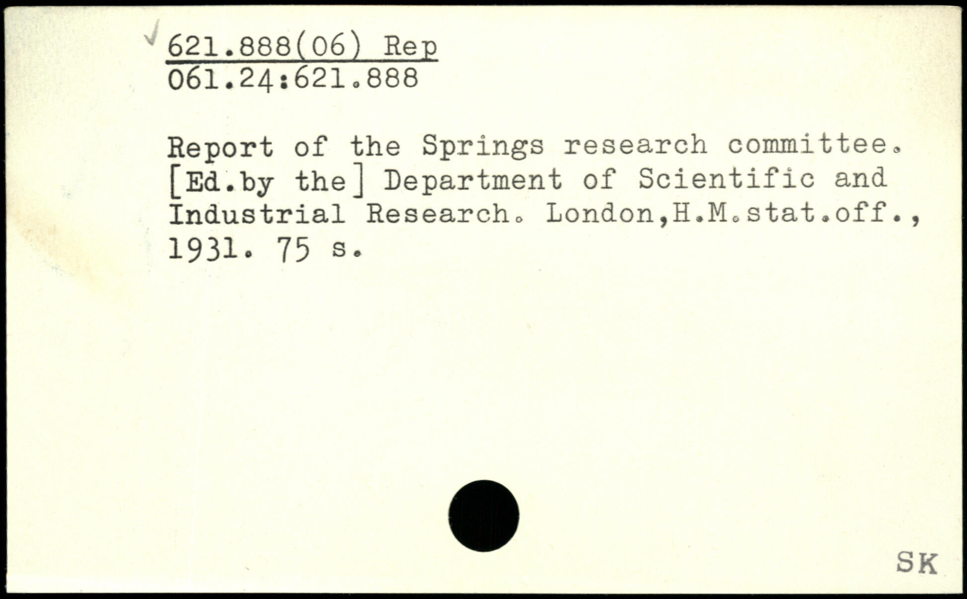 Report of the Springs research committee. [Ed.by the] Department of Scientific and Industrial Research. London,H.M.stat.off., 1931.