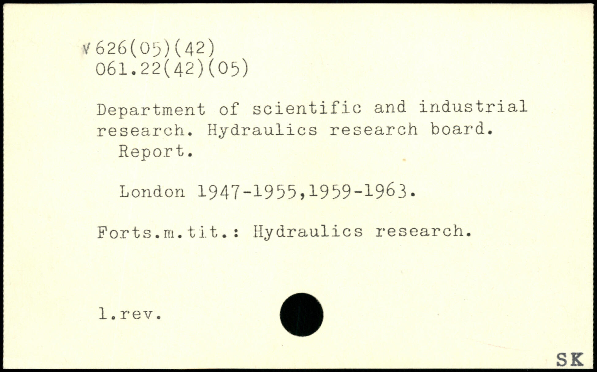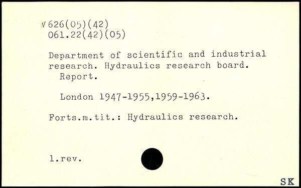 Department of scientific and industrial research. Hydraulics research board. Report.