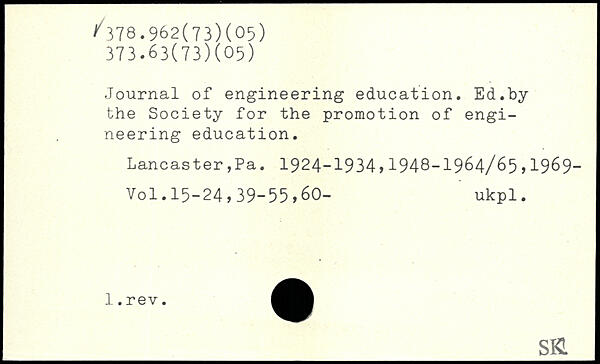 Journal of engineering education. Ed.by the Society for the promotion of engineering education. Lancaster,Pa. 1924-1934 ,1948-1964/65 ,1969-