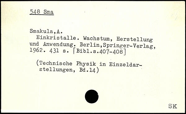 Einkristalle. Wachstum, Herstellung und Anwendung. Berlin,Springer-Verlag 1962.