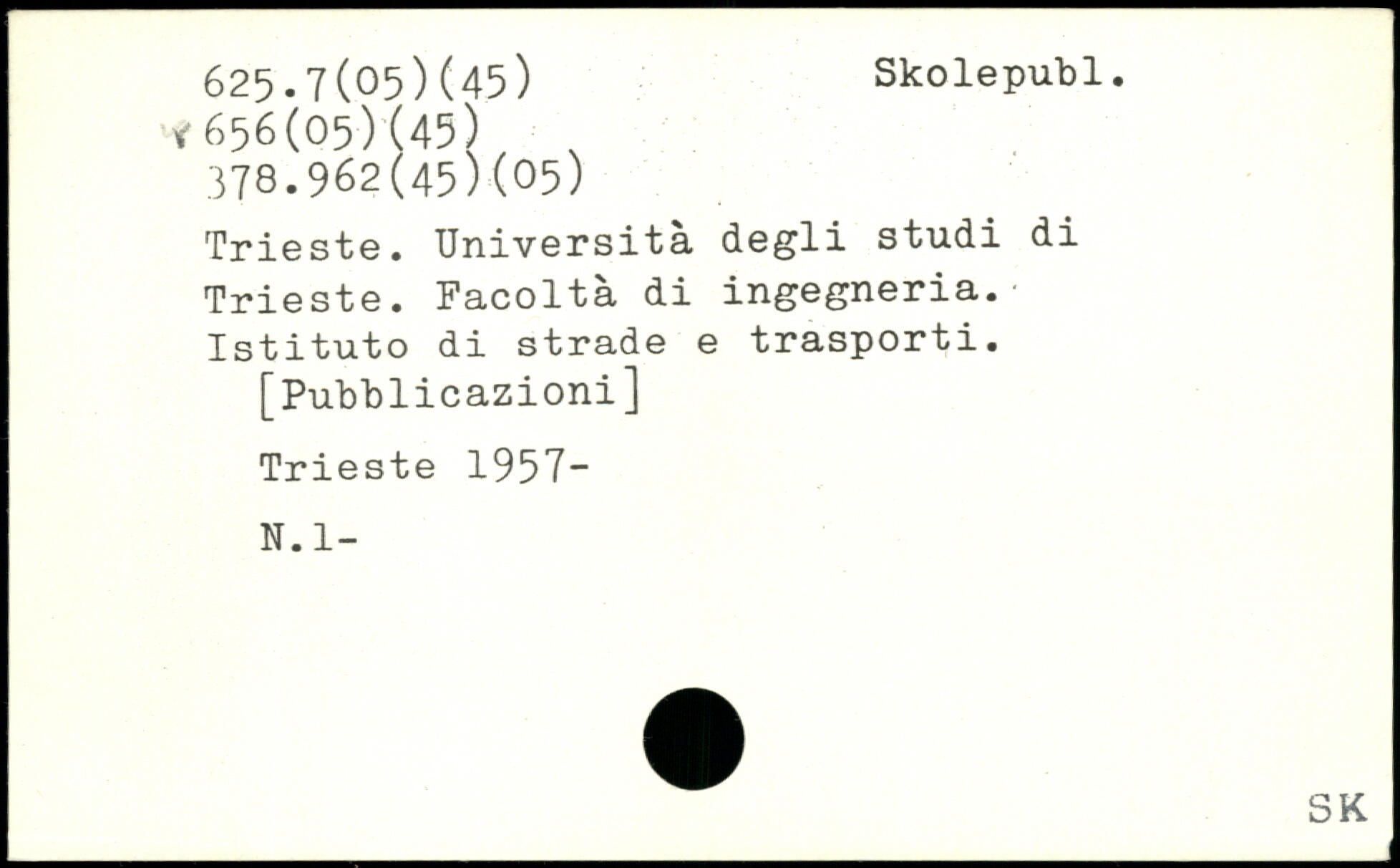 Trieste. Università degli studi di Trieste. Facoltà di ingegneria. ■ Istituto di strade e trasporti.