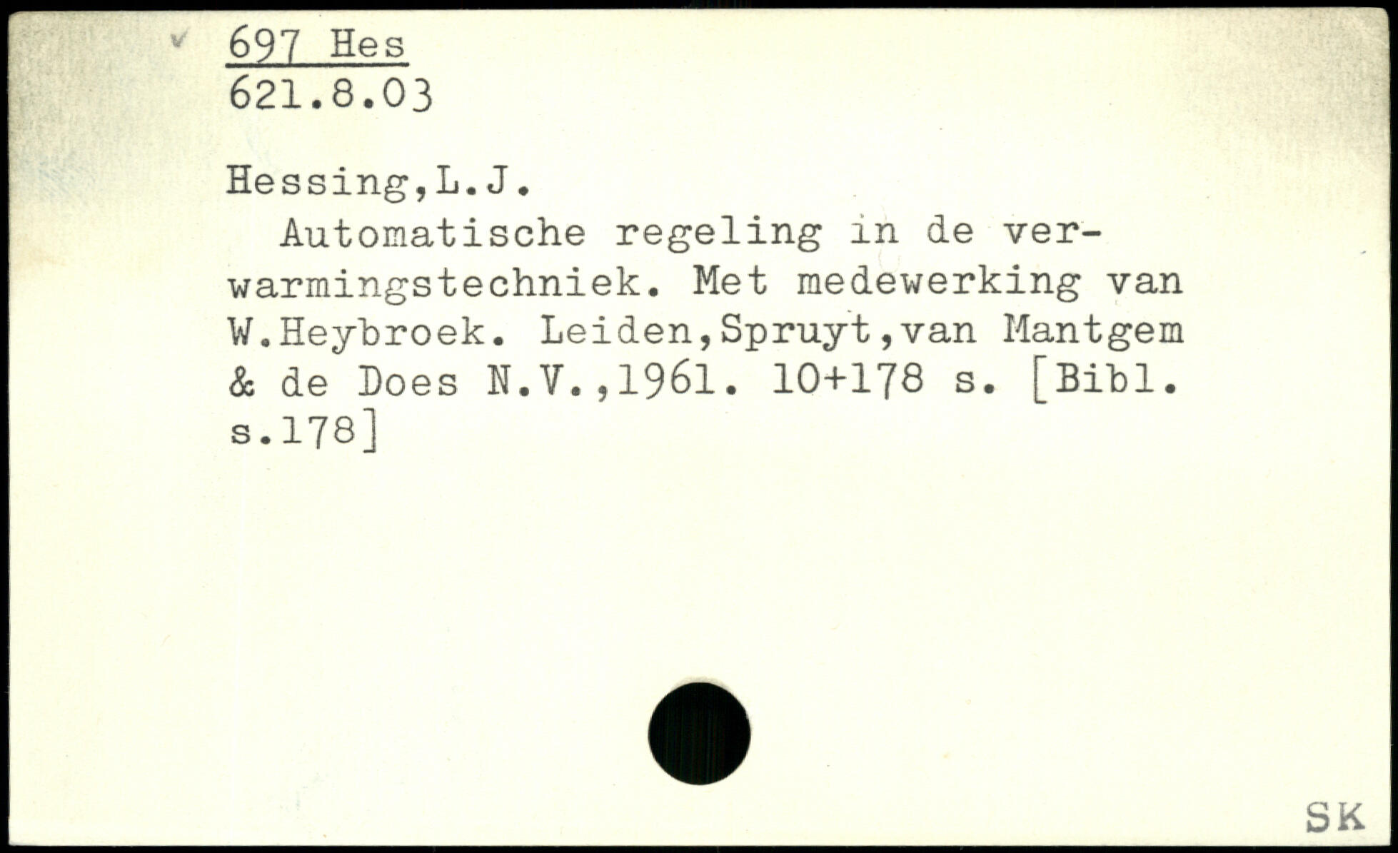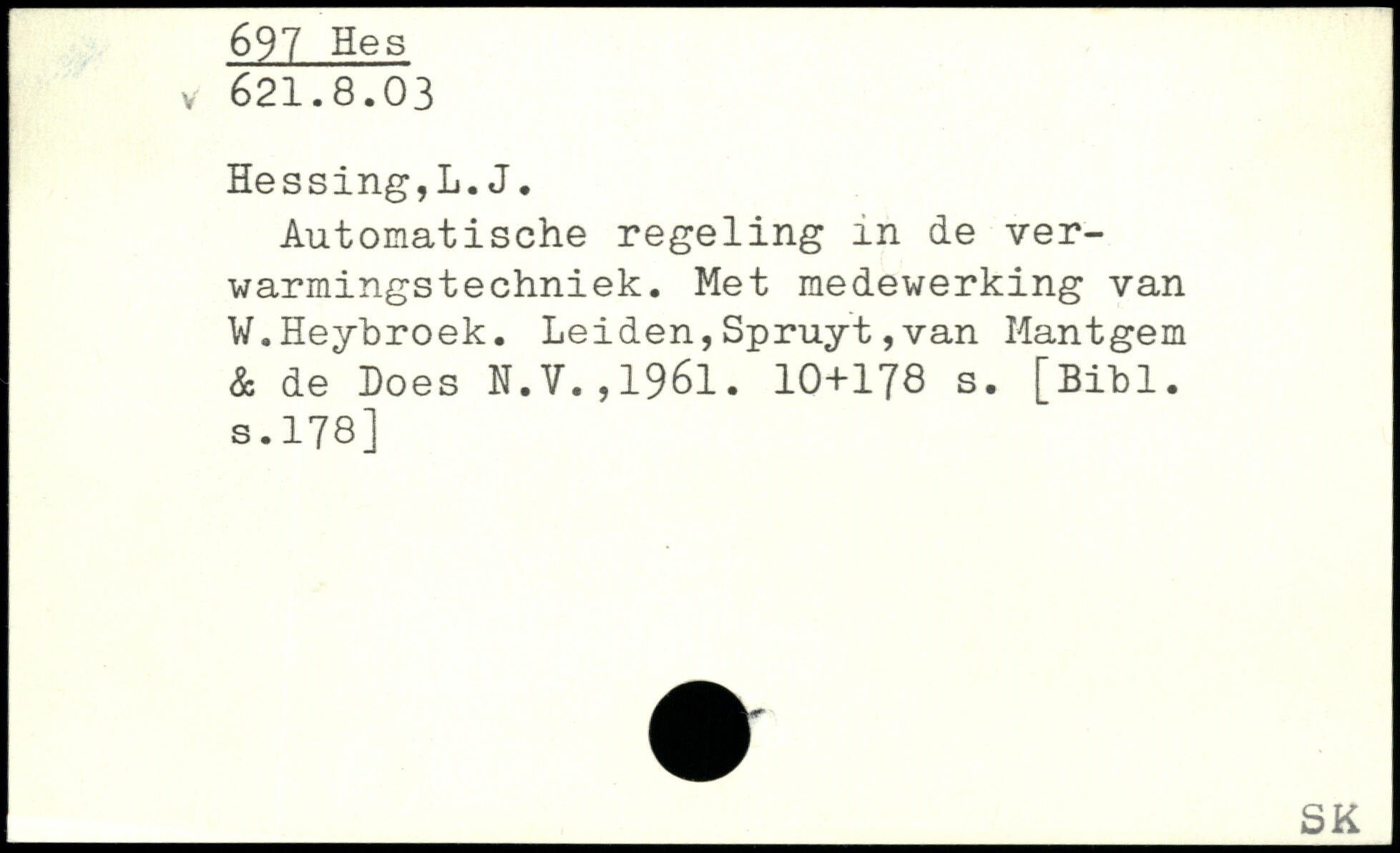Automatische regeling in de ver-warmingstechniek. Met medewerking van W.Heybroek. Leiden,Spruyt,van Mantgem & de Loes N.V.,1961.